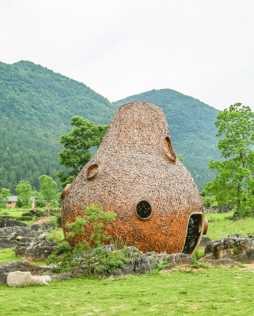 艺术家携手当地村民、民间手工艺人、非物质文化传承人,经过七个月的时间在酉阳这里因地制宜。共同打造17件乡村艺术作品,每一个作品都是在原生态体现农村和现代的结合。