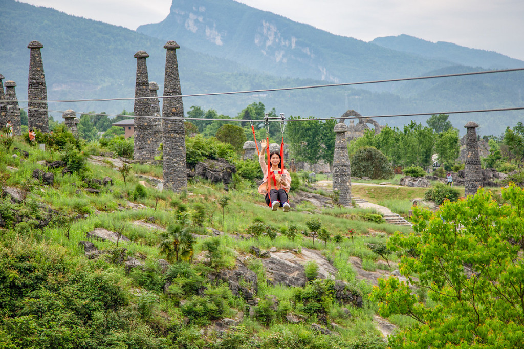 你可以选择乘坐“将军滑索”穿过小峡谷,感受夏天的风穿发而过的恣意。