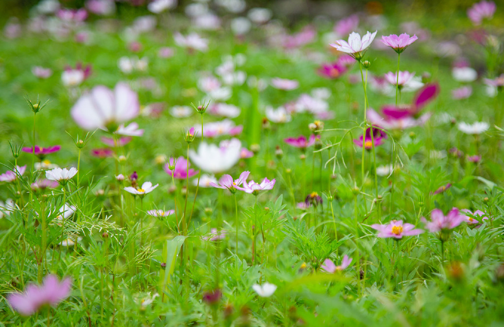 这里一年四季花开不同~地肤、菊花、紫薇,各有各的美!现在去看到的就是大片大片的格桑花,还有神秘的紫色花海马鞭草。繁花似锦不足以形容它的美,走入花丛中的随手拍都能称霸票圈~