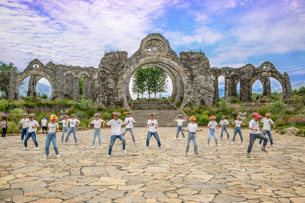 这里有随处可见的叠层石,诞生于5亿年前的寒武纪,它们的造型独特又有艺术感。现在更是满园花开,神秘的叠层石加上遍野的马鞭草、格桑花海,这里就是一幅大自然的神来之笔,是画里才有的地方。