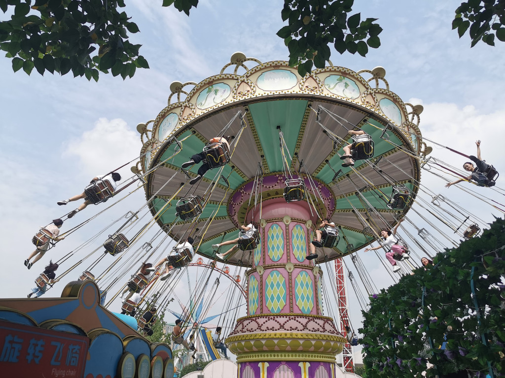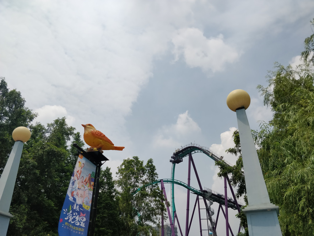 29号 成都欢乐谷打卡的一天 重庆的欢乐谷我也玩过,相比起来成都的这个面积更大 项目更多 更加好玩有特色 从距离背包十年店几百米的公交站上车坐50分钟公交车 18个站就能直接抵达欢乐谷大门处 ,欢乐谷门票一人是220元左右 是一张2天的通票 票价比重庆的贵了不少 好在可以多玩一天,不过和我们没什么关系 ,明天一大早我们就要飞稻城了。今天好好玩 争取把里边的所以项目打卡一遍,去到游乐场当然得玩里边最刺激的项目啦 要说什么项目是游乐场的灵魂那一定就是过山车了。成都欢乐谷里面共有5种大小不一 内容不同的过山车,有50米高低落差90度垂直的过山车西域飞天,也有着两个360旋转大弯的过山车星际飞翔,还有着速度快到张不开嘴的云霄飞龙 每一个都留下了我们快乐的回忆。除了过山车 我们还去了海盗船 跳楼机 大摆锤这些绝不能落下的项目,唯独在蹦极台下停止了前进的脚步 哈哈哈。