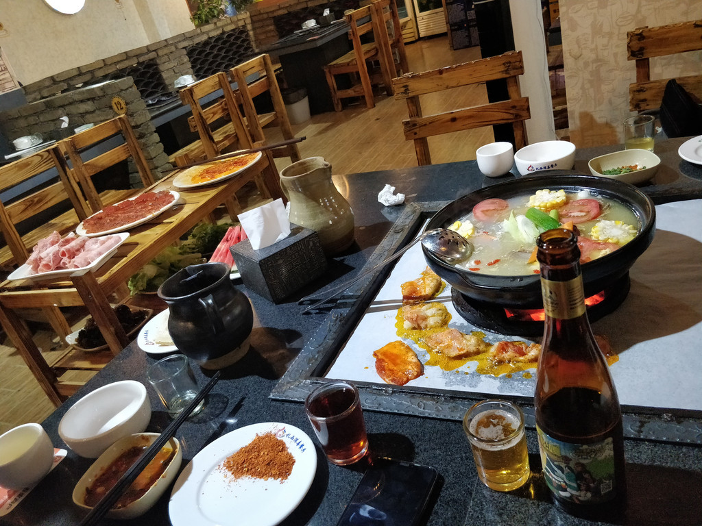 有了昨天走长线的经验 ,短线对我们来说就轻松简单了许多,今天的短线更多的可能是放松身心,再看看这边的美丽景色吧 毕竟下午就要回香格里拉镇了,短线上有着曾经辉煌过 现在却已然落魄的冲古寺 也有着与牛奶海 五色湖齐名的珍珠海 他如同一块跌落在人间的深色翡翠 随着一年四季周围植被颜色的变化 展示出那五光十色的风景 让每一个看过他的人无不为之着迷。相比较如果有轻微高反的人建议大家先选择走短线 适应一下海拔高度的变化 。根据自己的身体情况慎重选择 在高原地区切记一定不要逞强。 当天下午我们也是回到了香格里拉镇 找到了一家镇上生意最为火爆的餐厅享用了他家的烤肉与汤锅为一体的特色菜 味道确实蛮不错的 ,吃过晚餐再到对面的小酒馆坐下喝两杯比利时啤酒 听听民谣演唱 仿佛带我回到了在大理古城清吧里听歌的日子 太惬意了。