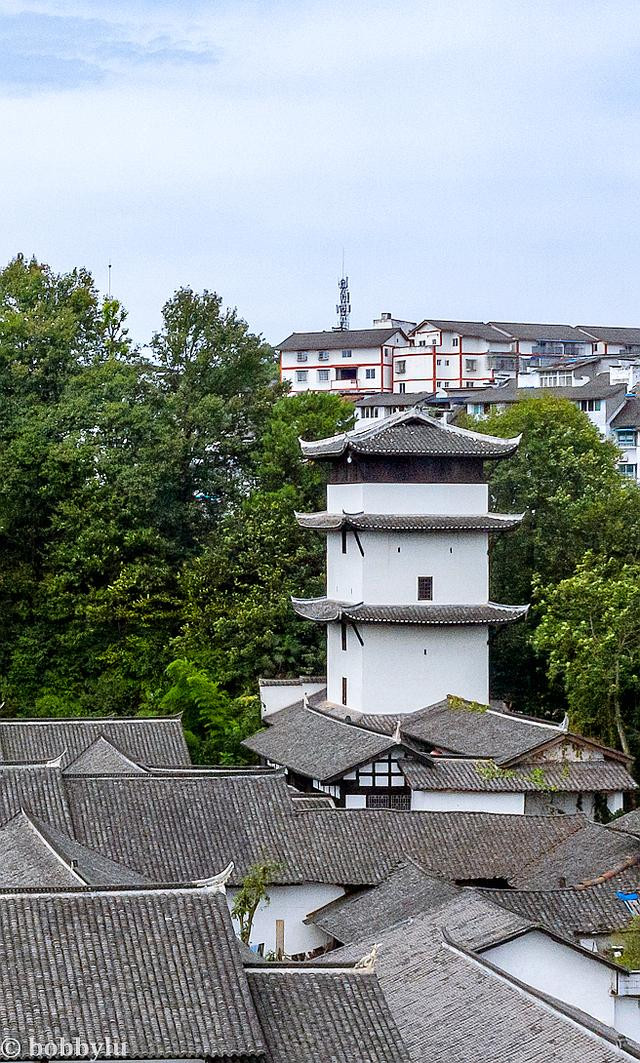 而整个庄园中最高的建筑,碉楼,则有五层大约40米之高。其功能,自然也和防范匪兵治乱与居家自保有关。据传,清中期以来江津地区局势动荡不安,匪患严重。会龙庄附近有“湖南果后大营”碑,果后营为曾国藩的湘军部队。咸丰年间,果后营曾入川追剿石达开部队,在咸丰二年还曾协助江津知县剿灭过合江土匪......