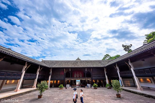 连专家都解不开的谜,咱就不在这里讨论了。在这里就以我参观过会龙庄后,所拍到的一些图片来看看,这到底是是一座怎样极尽奢华与气势恢弘庞大的庄园吧。从人们冠以的名号来看,有“西南第一庄”和“重庆小故宫”这样的称谓,而当地人则称其为“深山紫禁城”。不管怎样称呼,都说明了这座建筑群落的规模庞大,与谜之一样且神秘存在的背景。