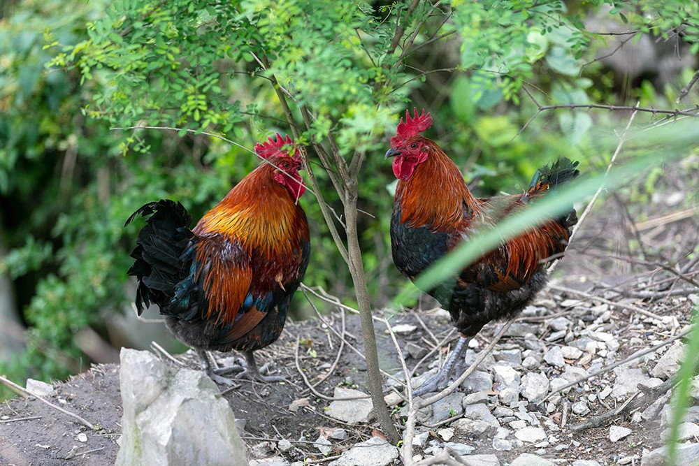 跑山鸡和生态鸭是度假区里家禽肉质品食材的主要来源。跑山鸡胴体丰满、切面光亮、有弹性,肉质细嫩、鲜香味浓、风味独特。生态鸭生活有规律,常年在水中觅食、嬉戏、杂食、耐寒性强,因此肉质紧实有嚼劲、味道鲜美。用它们做出来的汤锅深受游客的喜爱。