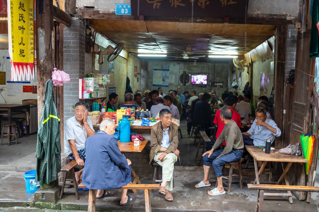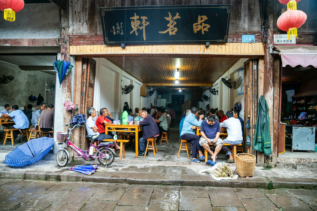 从太平门开始,走在万灵古镇的老街上,你会发现,有不少的茶馆,里面的人大多都是年过花甲的人,镇里的老人们闲暇时间便聚于茶馆,品一杯茶,聊一会儿天,茶馆是大家极好的公告交流场所。