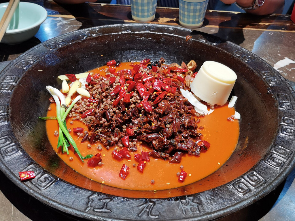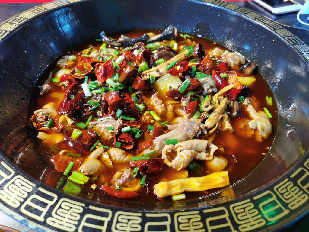 来重庆一是要吃火锅,二是要吃烧鸡公,好奇的是重庆遍地的火锅,还真没有什么烧鸡公店,在某点评上找了一家榜上有名的烧鸡公——位于图书大厦的一只烧鸡公(解放碑店),跟我平时吃的烧鸡公不太一样,更确切地说是肥肠鸡,两个人吃了138元,味道也是杠杠的。