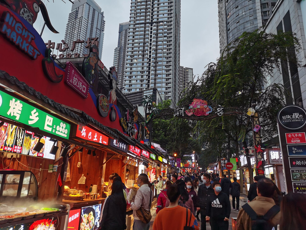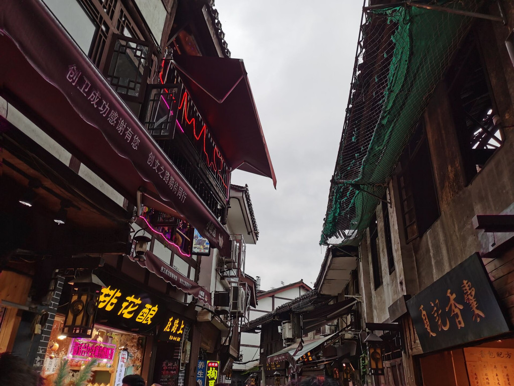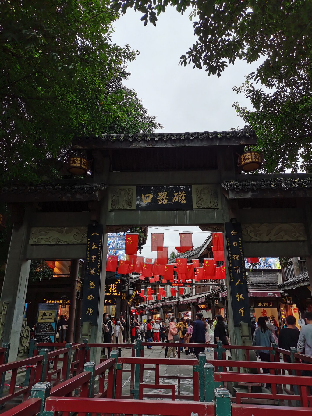 第二天的行程本计划是去武隆山,然而导航显示,武隆山距离重庆市区有一百多公里,临时决定改道去磁器口古镇。从较场口乘坐地铁一号线直达景区,一到景区脑子里就浮现两字“后悔”,方圆几里全是人头,景区为了分流设了八个入口,每个口都是人头攒动,更可怕的是进入景区完全被人流给堵住了,狭窄的古街道被人流堵的死死的,已然分不清哪跟哪,只能跟着人流移动。我所看到的磁器口古镇已经完全商业化,两边的古建筑也是重新修葺过的,已然没有了自然古镇风貌的一点烙印。