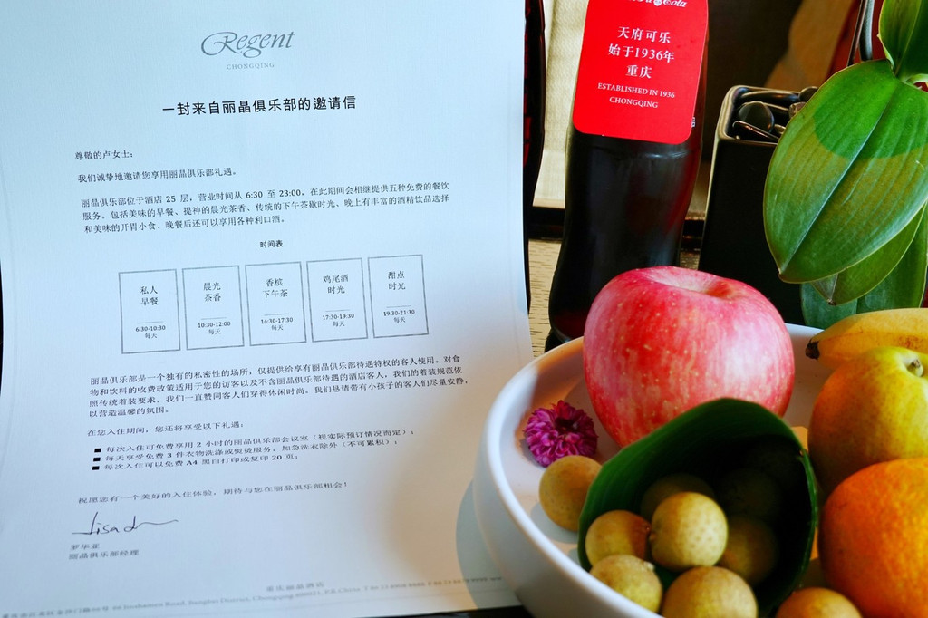 当我在朋友圈发来 重庆 丽晶酒店时,好几个朋友都回复说很喜欢丽晶酒店。因为酒店的服务让人舒服,尤其是无处不在的服务细节。就像看到房间这张丽晶俱乐部的邀请,无论是私人早餐、香槟下午茶、甜点时光………都能让你享受属于你的私享之境。