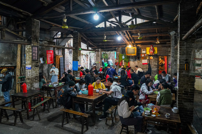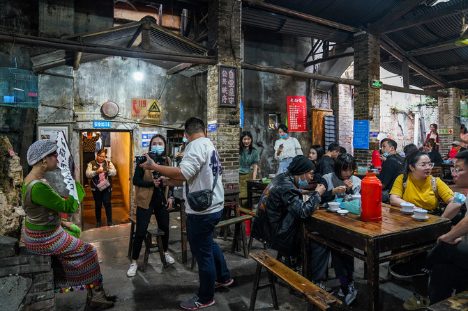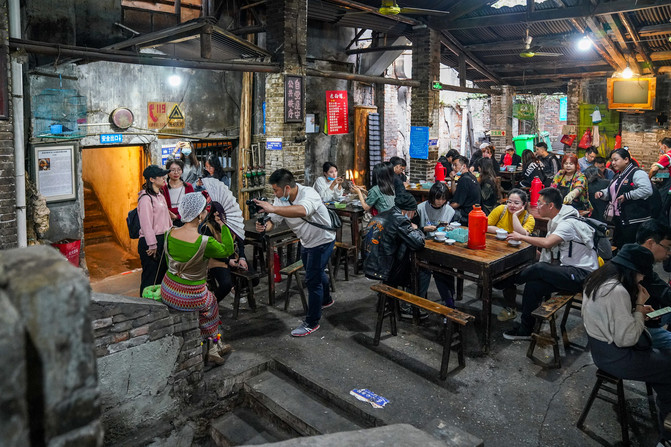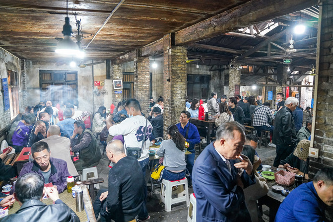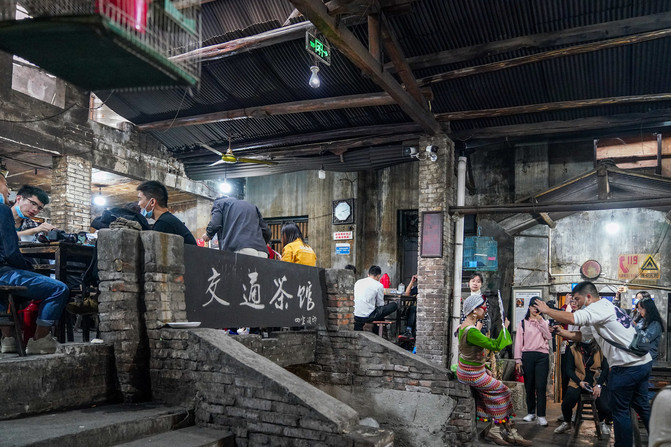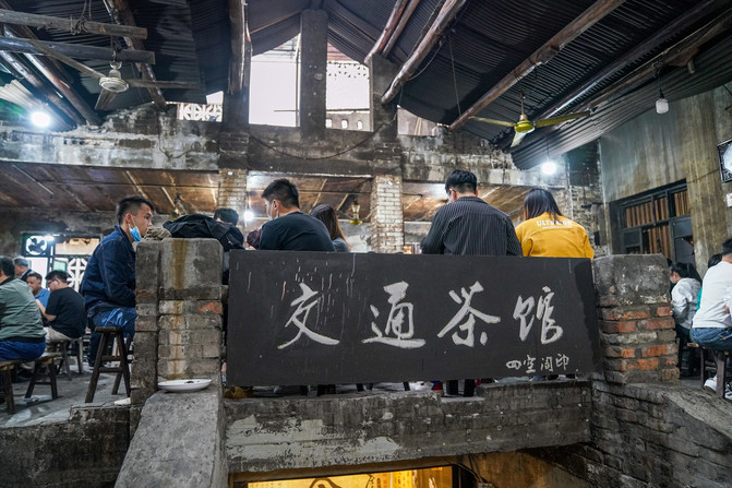 【交通茶馆】川美黄桷坪校区东门出步行5分钟,打卡电影《疯狂的石头》、综艺《极限挑战》取景地,市井气息浓厚的老店。非常低调的入口,走过短短的小过道,一间略显破败的木梁结构大屋进入眼帘,还有那些木条凳,斑驳的木方桌,盖碗茶和老茶客,似乎有种穿越时空的错觉。拍照出片指数:★★★★