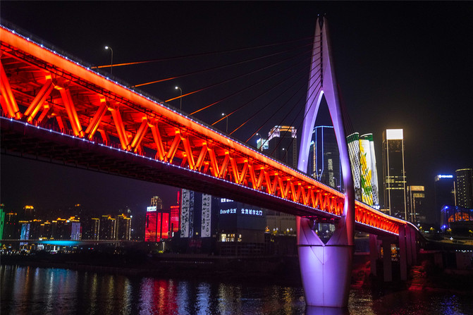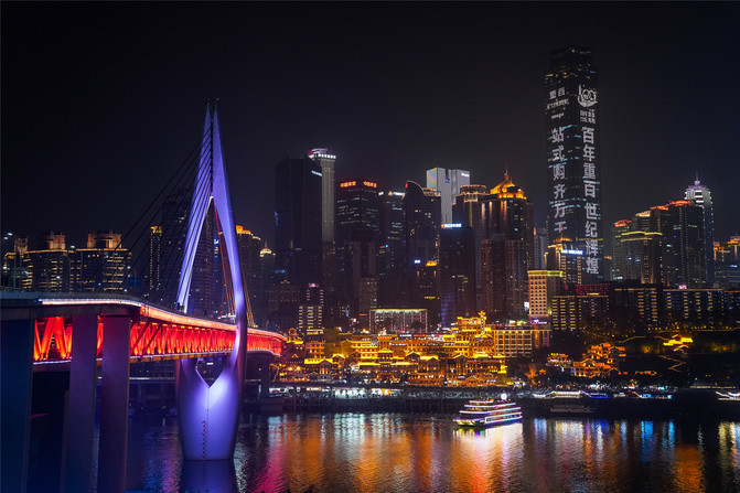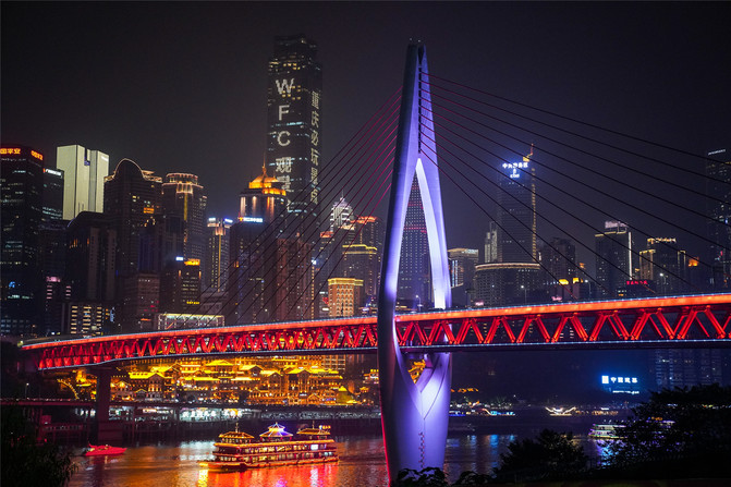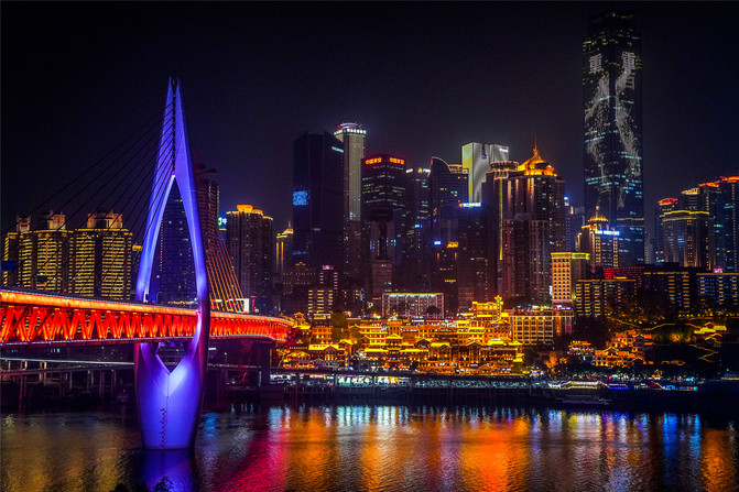 【千厮门大桥夜拍】拍摄洪崖洞,站在千厮门大桥上是个绝佳的位置。坐轻轨到千厮门大桥的另一端“大剧院站”,下车即可走到大桥,上桥并走到洪崖洞上方拍摄。拍照出片指数:★★★★★
