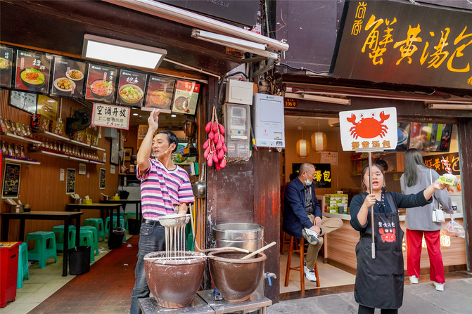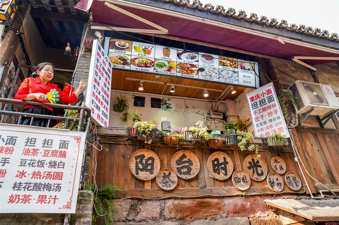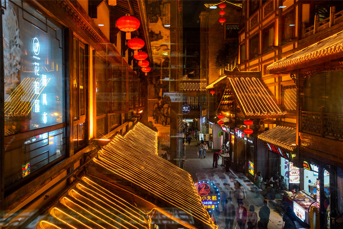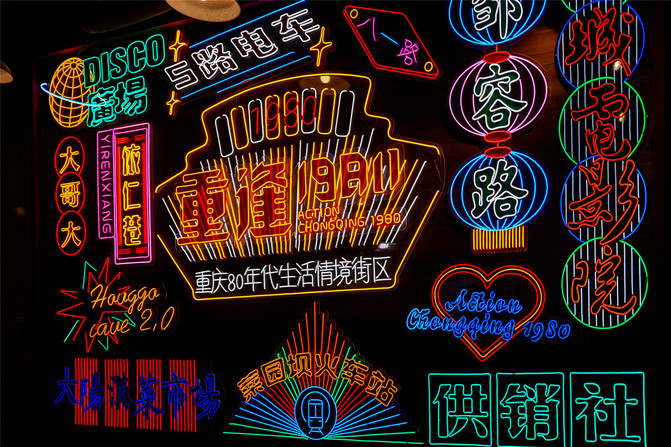 【洪崖洞“重逢1980”街区】以具有巴渝传统建筑特色的“吊脚楼”风貌为主体,通过分层筑台、吊脚、错叠、临崖等山地建筑手法,把餐饮、娱乐、休闲、保健、酒店和特色文化购物等六大业态有机整合在一起,形成了别具一格的“立体式空中步行街”,成为具有层次与质感的城市景区、商业中心。“重逢1980”街区,以20世纪八九十年代重庆市井生活为主题重新打造,总建筑面积约3100平方米,艺术化展现年代生活场景区、年代人物角色演绎区和年代互动体验区等。拍照出片指数:★★★★