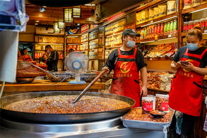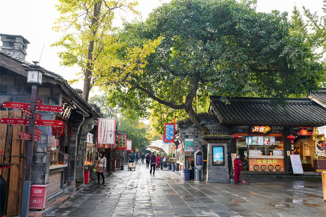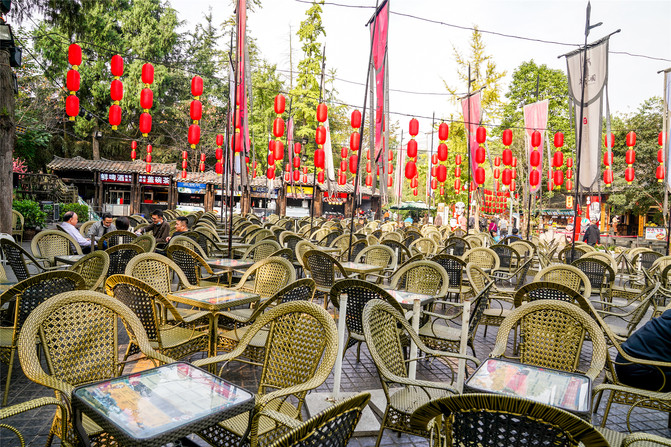 【锦里】是一条仿古商业街,是成都人气最旺景点之一,也是成都武侯祠博物馆的一部分。在这里,你可以欣赏捏泥人、摆糖画的手艺,也可以逛逛极富三国特色的店铺。街里还有各种四川特色小吃,各种茶楼、咖啡馆、酒吧、客栈等随时可落座。黄昏时分,锦里会亮起灯,颇有韵味,适合拍照游玩。拍照出片指数:★★★★