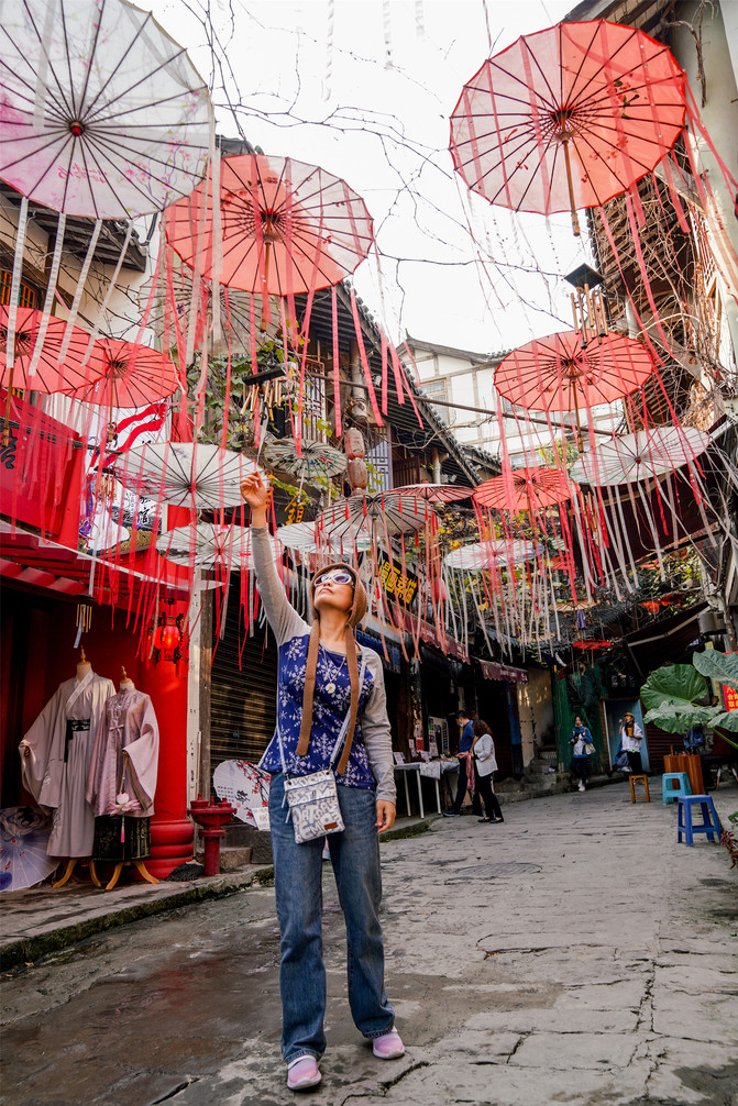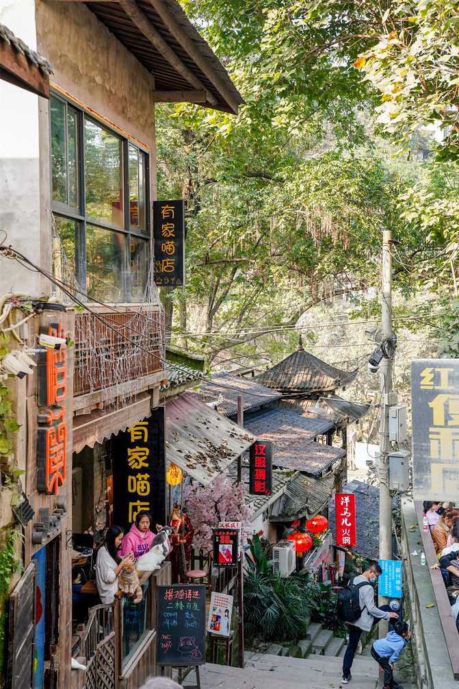 【磁器口古镇】曾经"白日里千人拱手,入夜后万盏明灯"繁盛一时。巴渝文化、宗教文化、沙磁文化、红岩文化和民间文化,各具特色。一条石板路,千年磁器口,是重庆古城的缩影和象征,被赞誉为"小重庆",磁器口古镇开发有榨油、抽丝、制糖、捏面人、川戏等传统表演项目和各种传统小吃、茶馆等,每年春节举办的磁器口庙会是最具特色的传统活动,吸引数万市民前往参与。2号线轻轨直达,注意要上午早一点游览,否则人挤人。拍照出片指数:★★★★