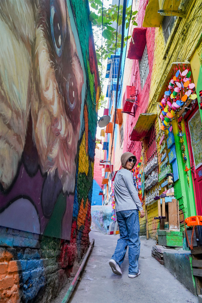 【川美黄桷坪涂鸦街】总长1.25km,整个街区所到之处的居民楼建筑物上满满都是涂鸦,极具艺术气息。随手一拍都是风景,喜欢色彩鲜明的美美滴照片拍起来。轻轨2号线杨家坪站下,再转公交223、823到黄桷坪正街站或打车起步价。拍照出片指数:★★★★