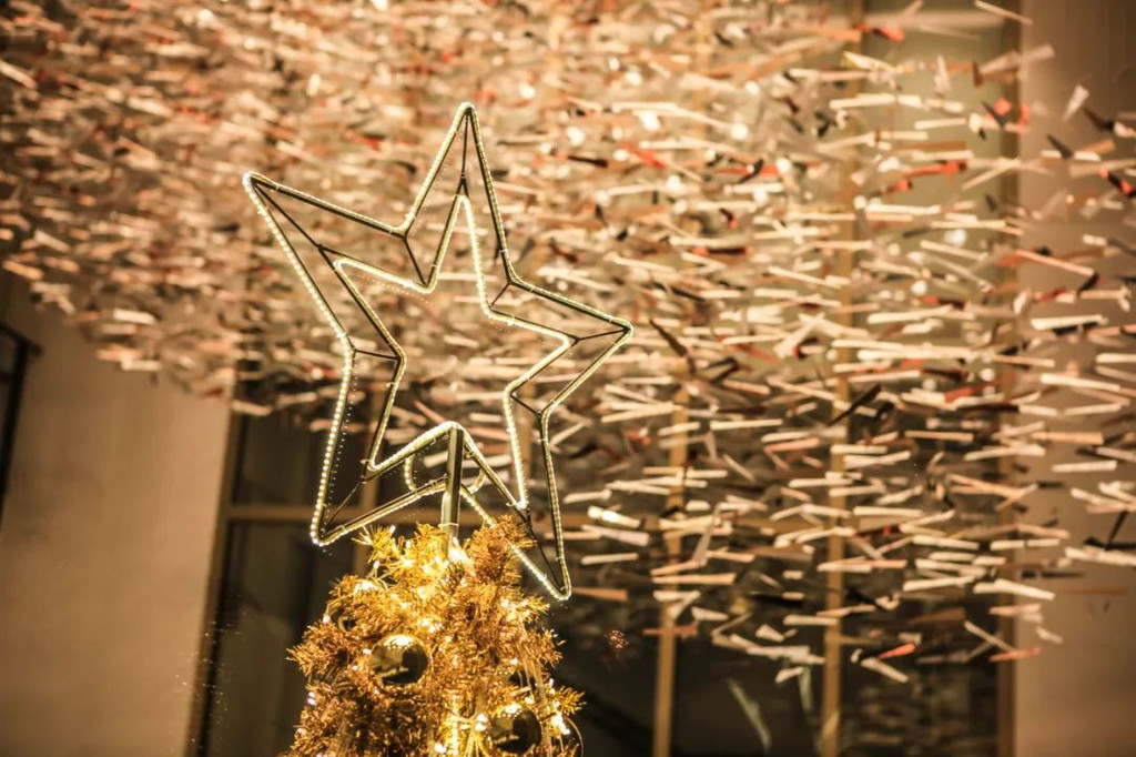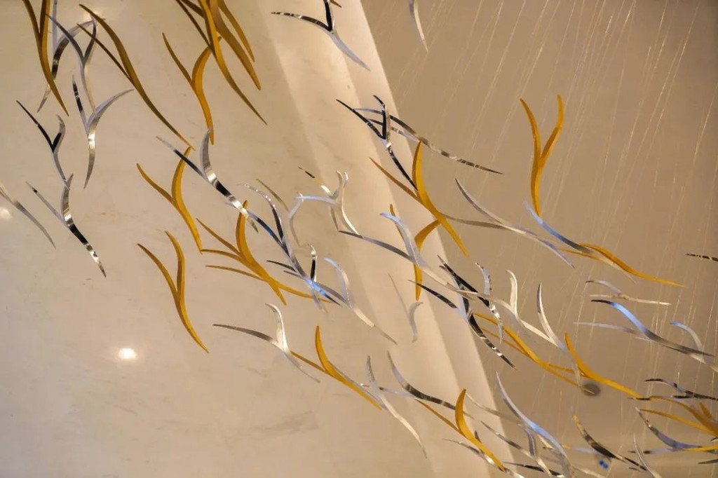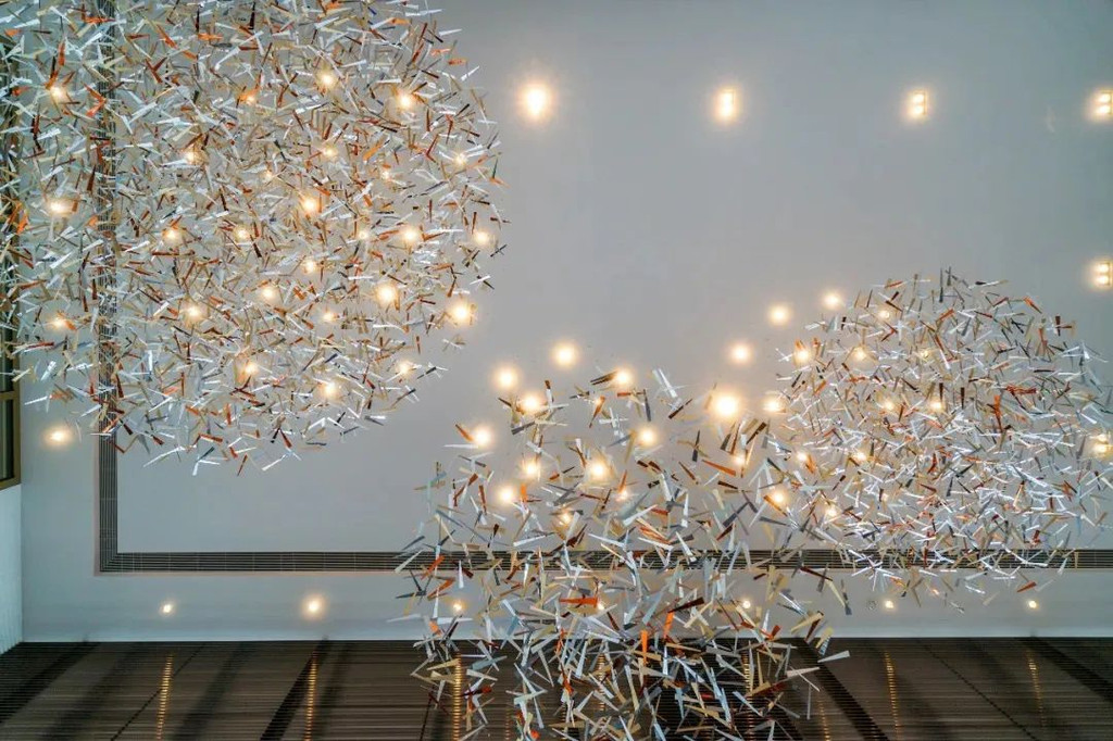 日本艺术家泽田广俊创办的Studio Sawada Design创作的“鸟随风舞”现身于头顶,线条柔和流畅,仿佛在灵动、飞扬与幻变在同你认真地探索空灵世界。