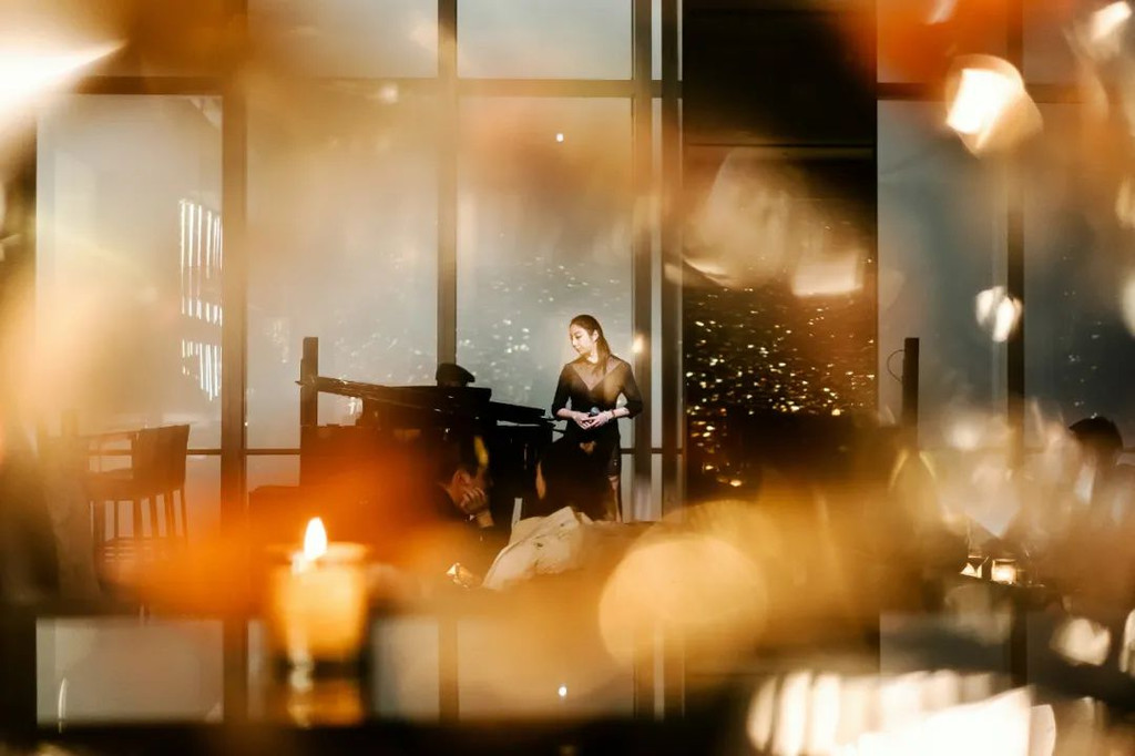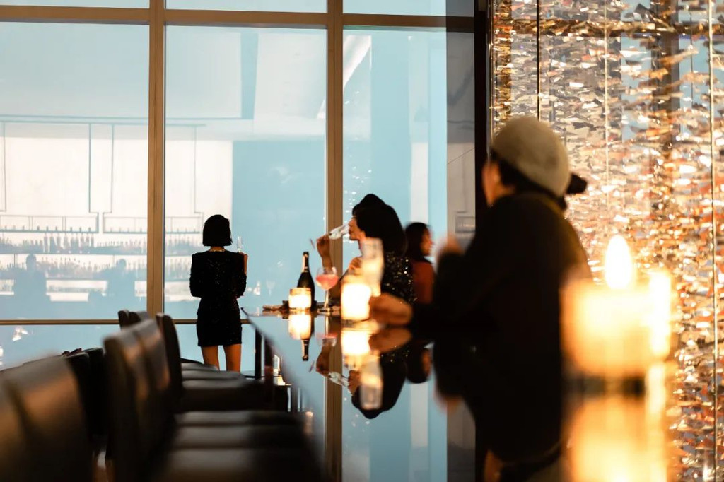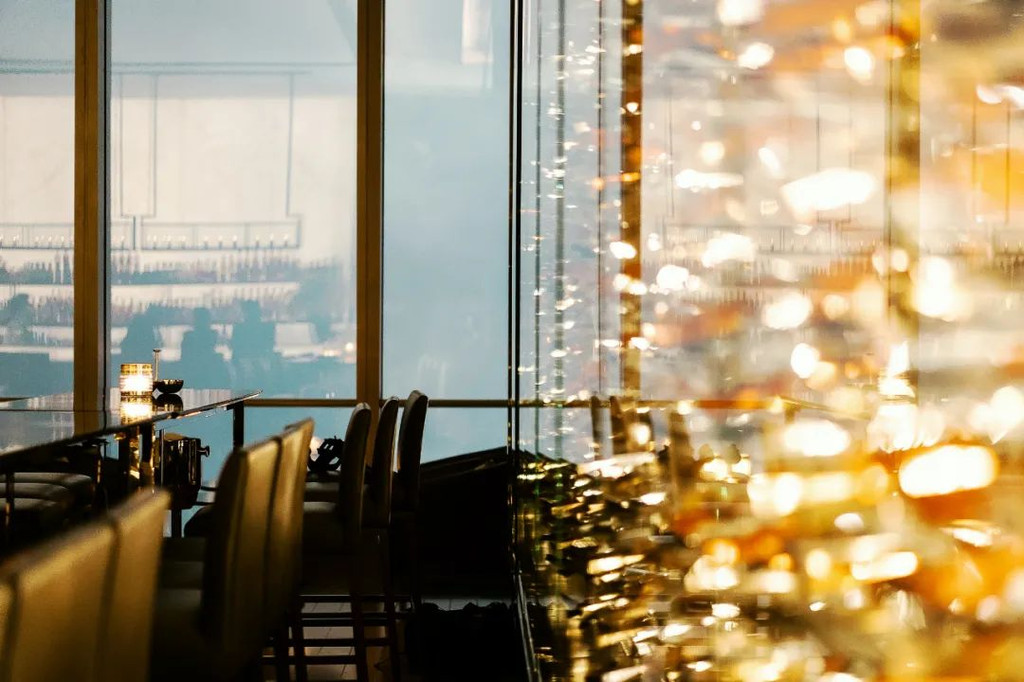 酒吧空间同样最大限度地将室外江景夜色引入室内,每扇窗户都被精心安排,朝向最美的视角开设,为来客细细收集这里的每一刻光景。独酌、小聚或者二人世界的约会,都能在这里浓缩出一段天际空间的浪漫——伴着迷人的云端夜景,在现场乐队的演奏下,品尝原创鸡尾酒。
