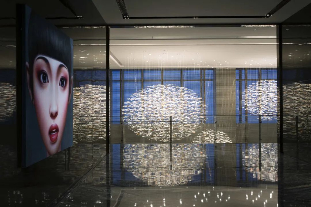 62楼的天际大堂很好地诠释了空间之美丽,光线及视野在此明亮、开阔。宽敞的空间加上挑高的天花板设计给日本艺术家Hirotoshi Sawada充分的创作余地,“鸟随风舞”在空中漂浮,如群鸟飞过天空,形成一道独特的风景。
