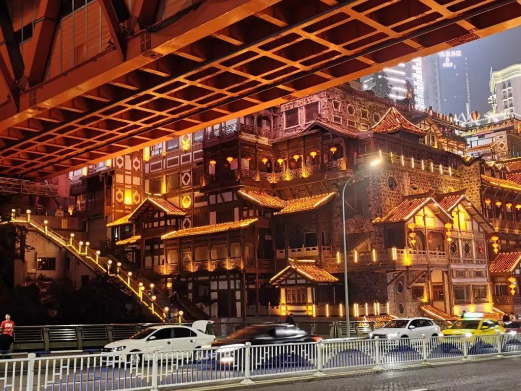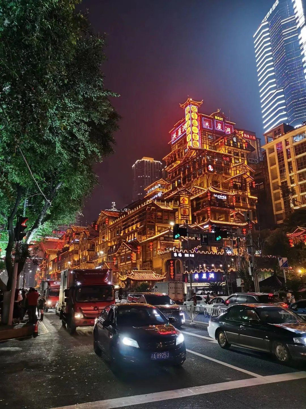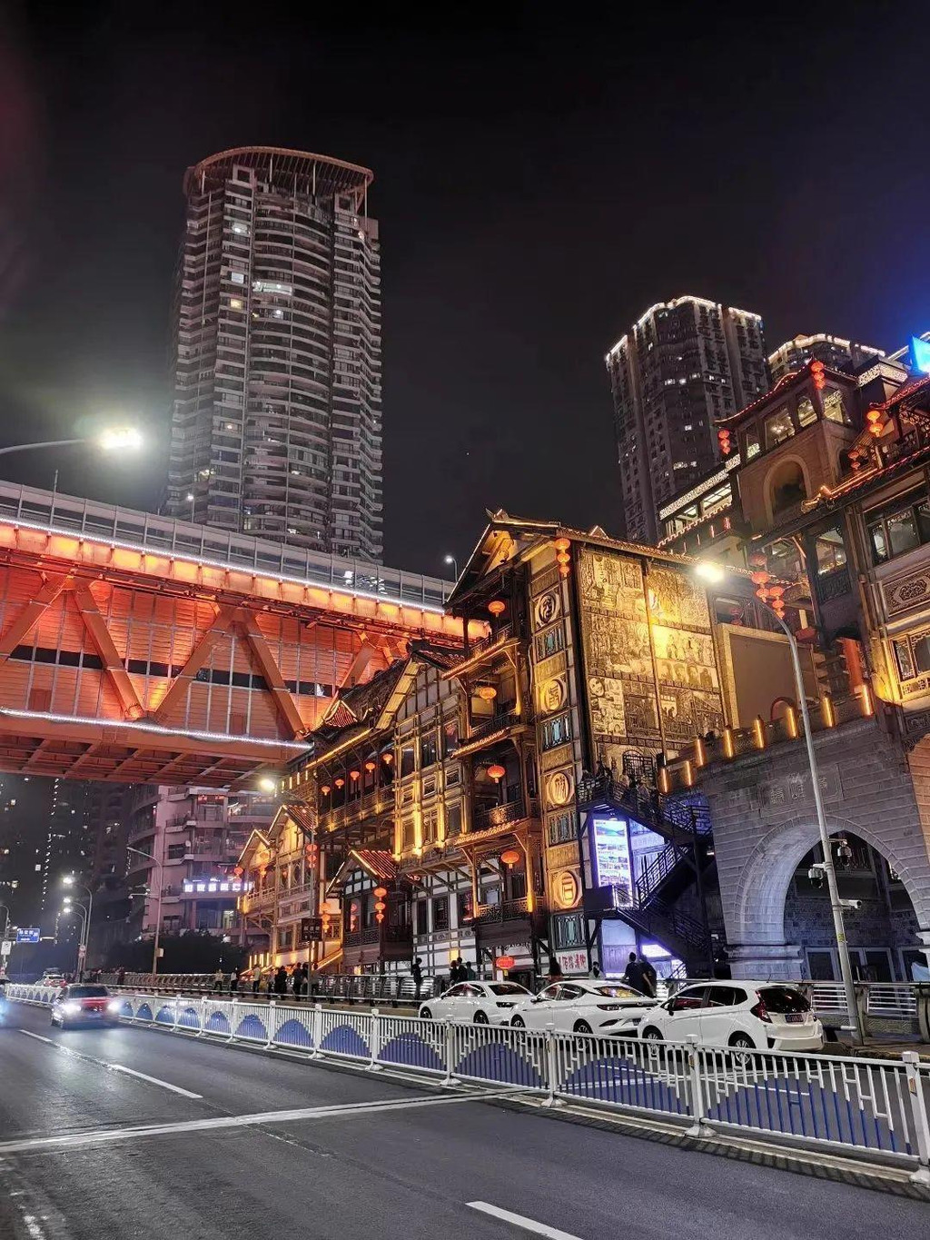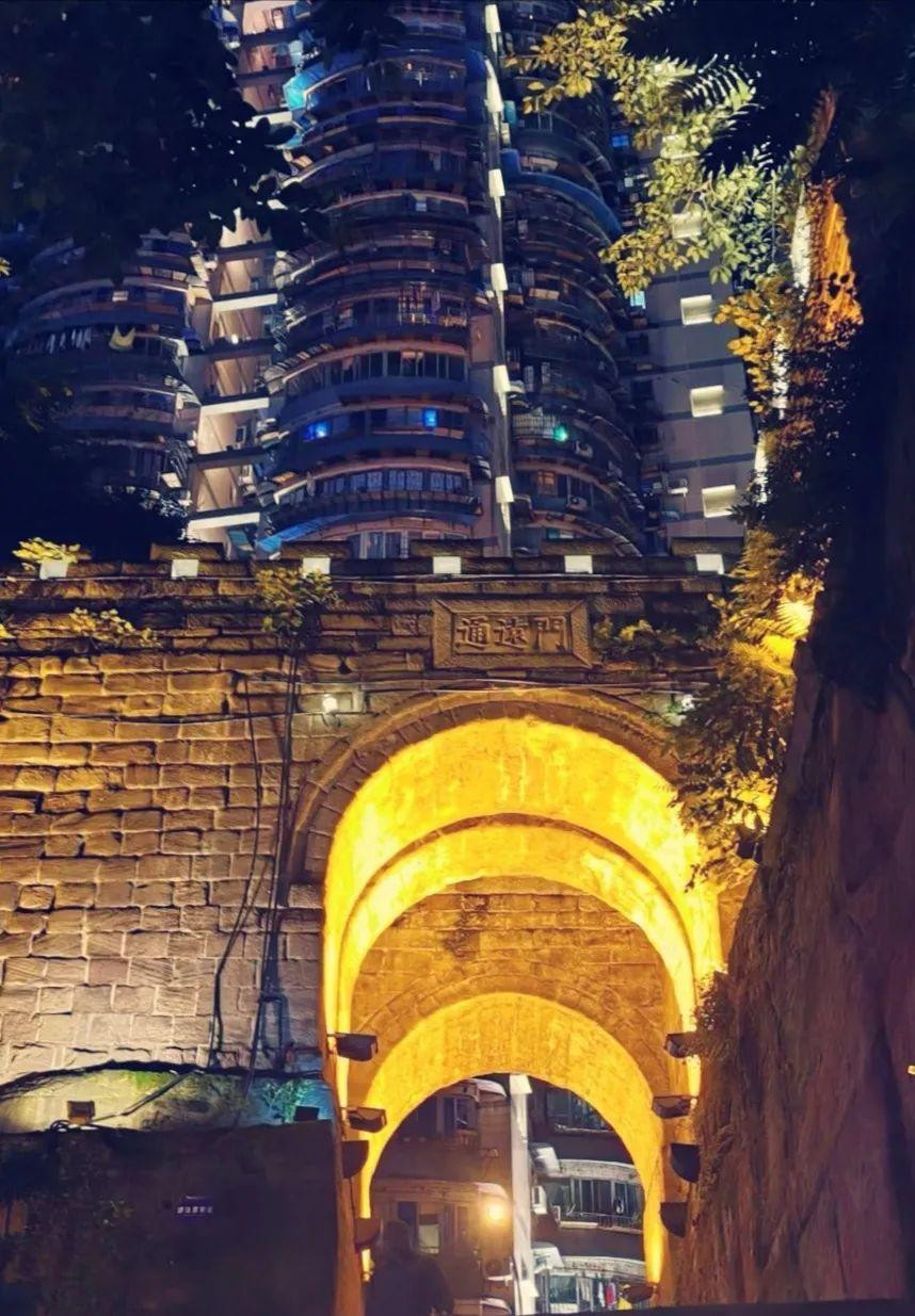 古老城门和现代建筑的熨帖以及山城特有的起伏让夜色更加魔幻: