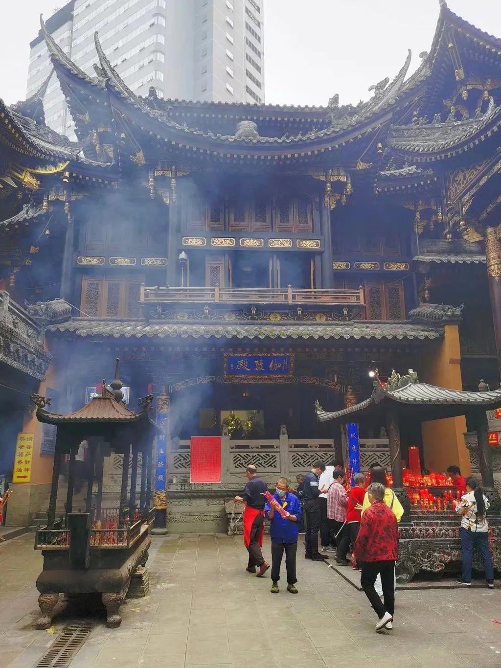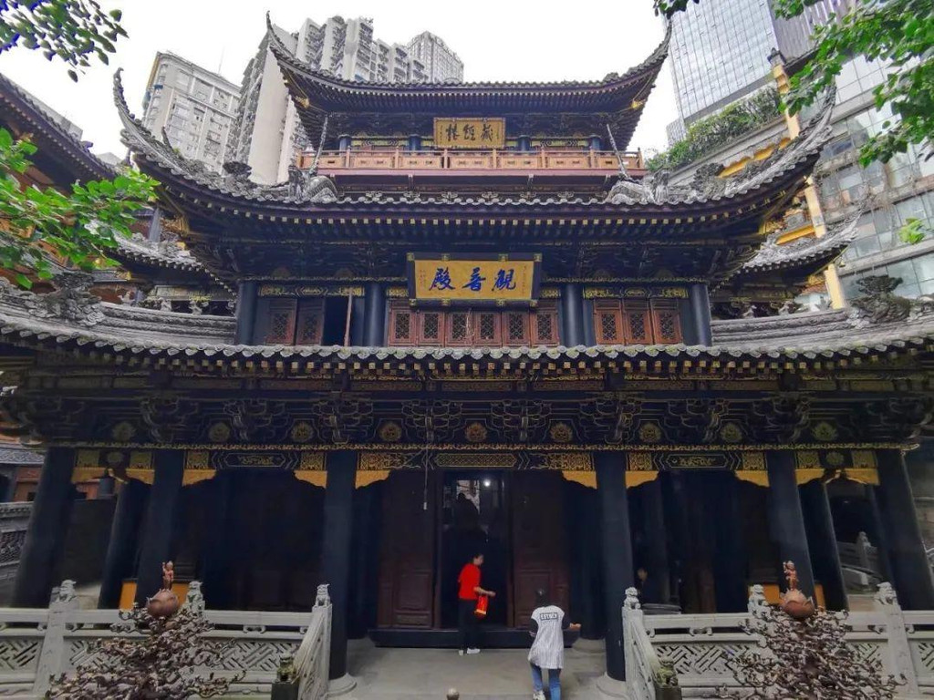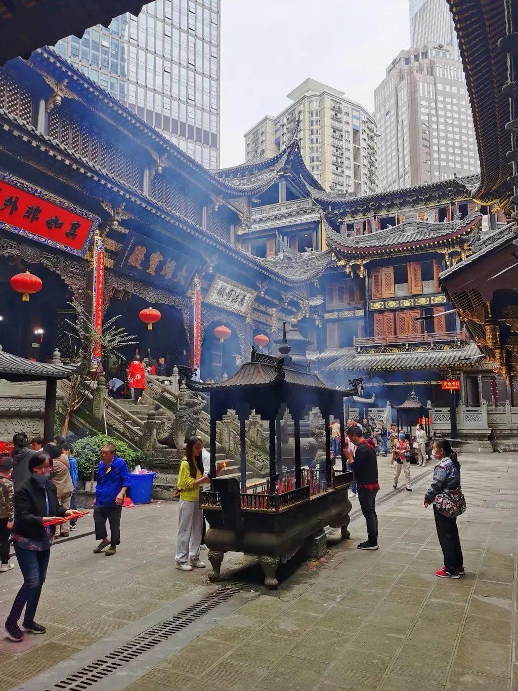 罗汉寺位于离解放碑不远的重庆路上,掩藏在一片高楼大厦的夹缝中,略显荒唐,这大概是荒唐的《疯狂的石头》在此拍摄的原因。