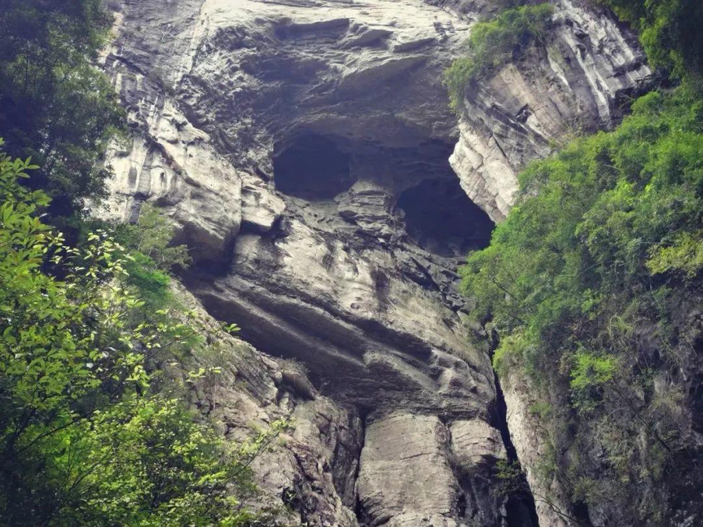 下图是“大猩猩”:黑龙桥石壁上方的一处景观,眼窝深邃,面部轮廓明显,被认为是黑龙桥的守护神。