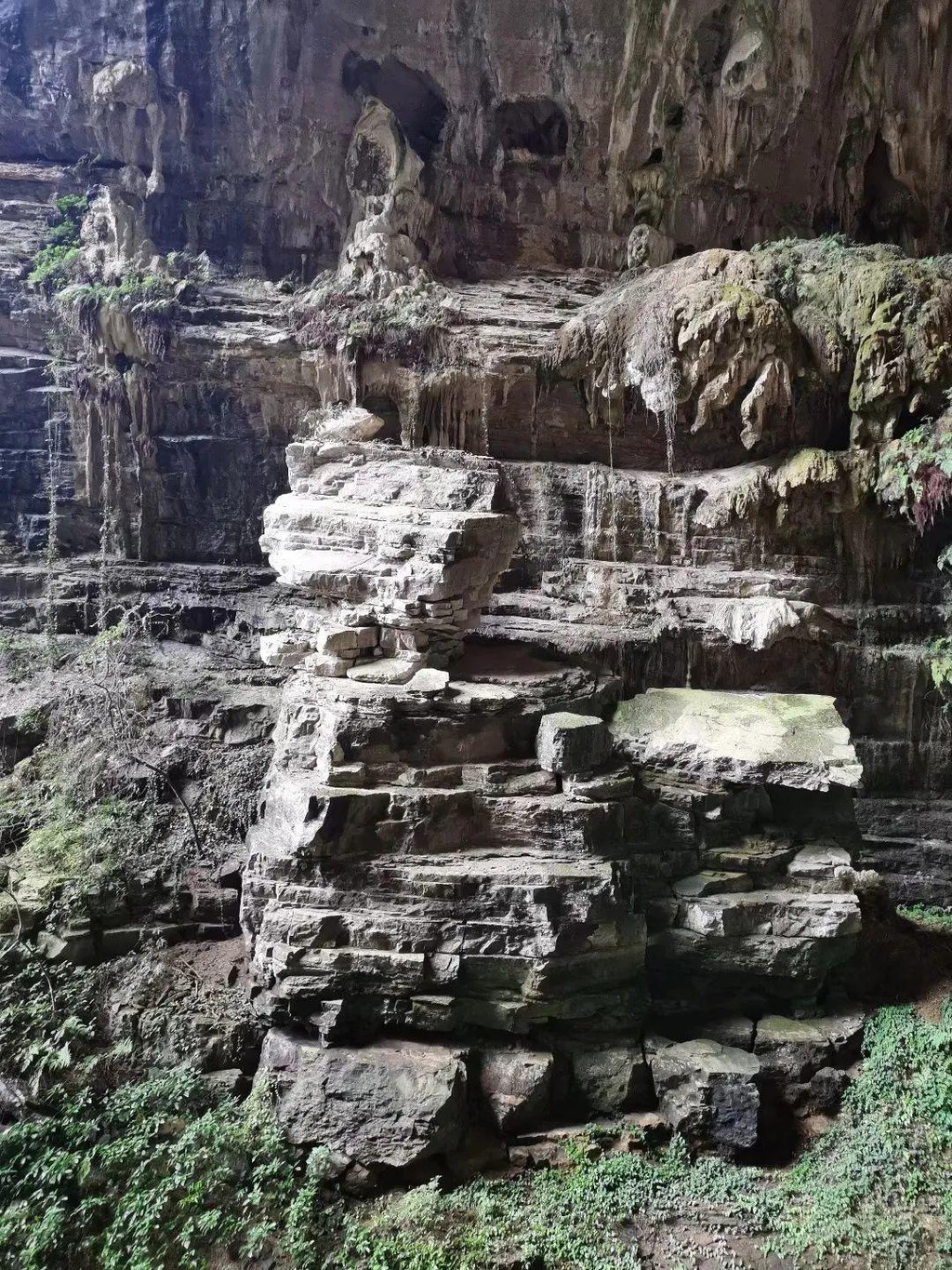 下图是三峡瀑石,是从古称“天开一线,峡张一门”的夔门边切割而来,由江水常年拍打冲刷而成,因形状像瀑布落下,故名瀑石。