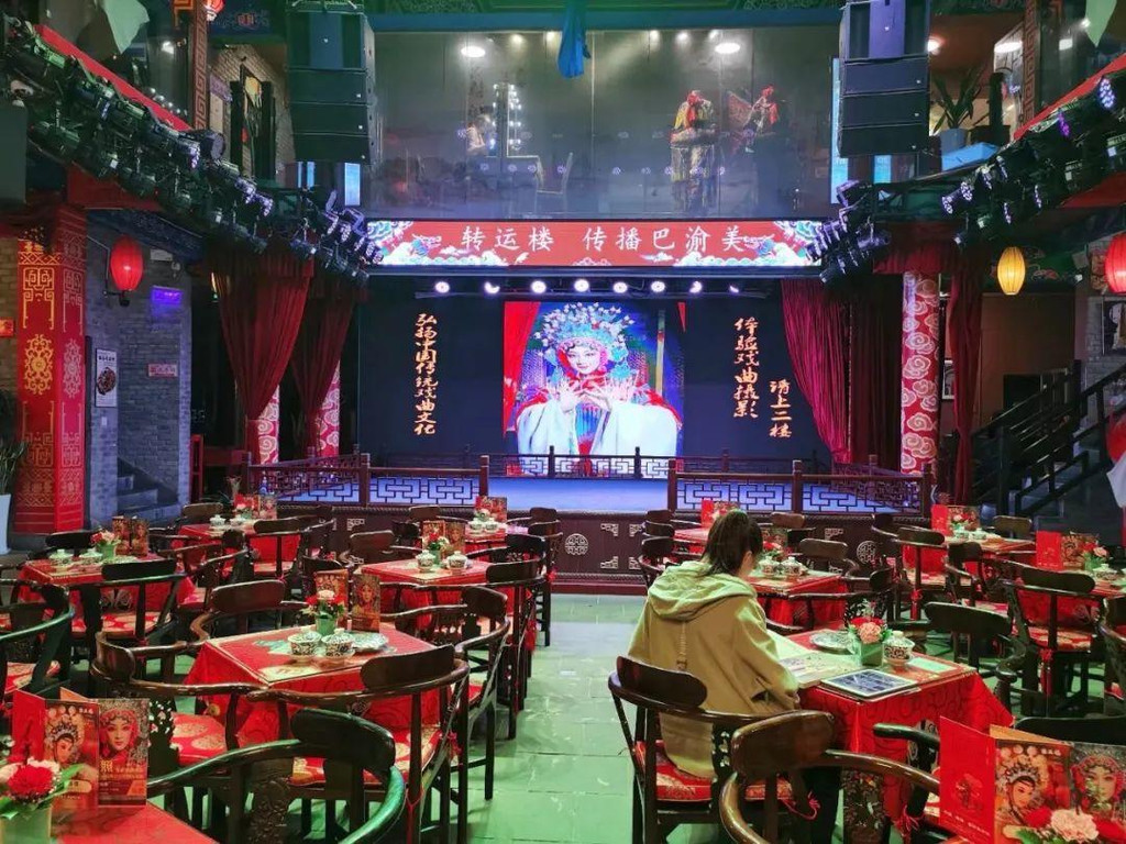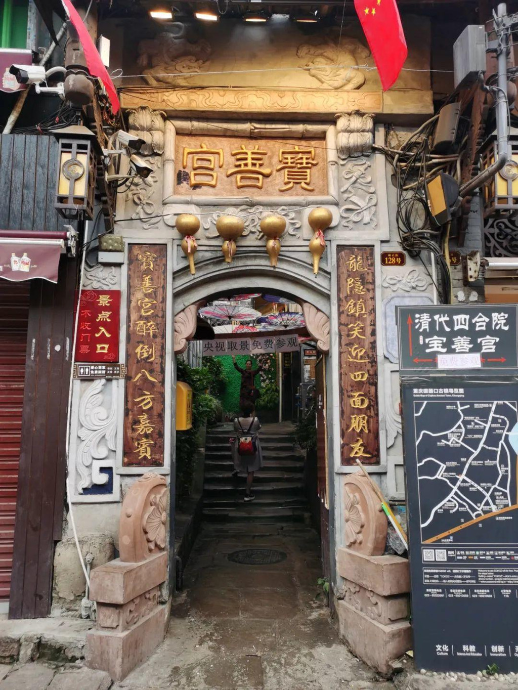从杂货铺沿正街前行,来到了宝善宫。这里原是道教宫观,抗战时期作为嘉陵江小学的校址,物理学家丁肇中先生就曾在此就读。园内环境优雅,与街道的喧嚷对比鲜明。如今宝善宫内是茶艺馆和川剧表演场所。