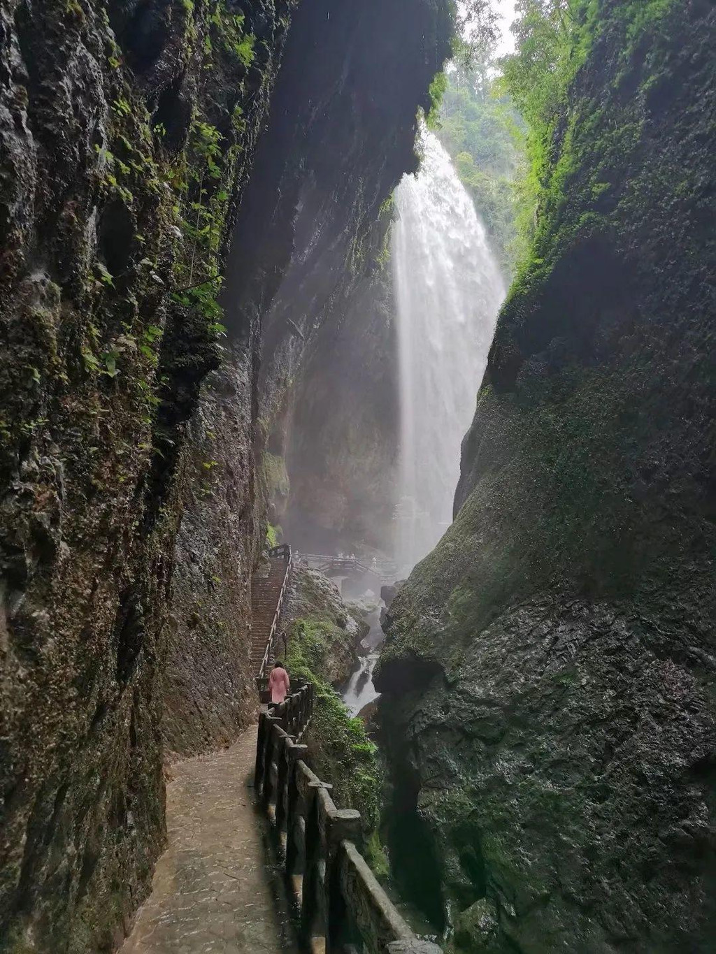 再往前走,轰轰巨响振聋发聩,前方不远处一道白练映入眼帘。