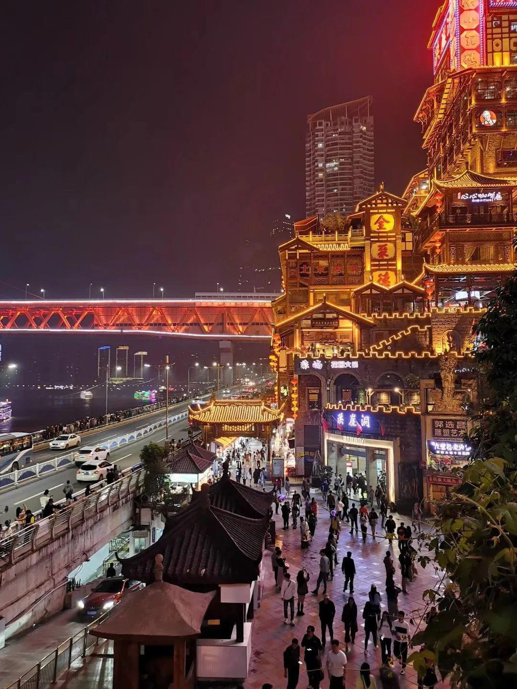 最魔幻的,莫过于解放碑西北的洪崖洞和东北的朝天门,下面我们就坐上夜游两江的轮船,去看看重庆最美的夜色。
