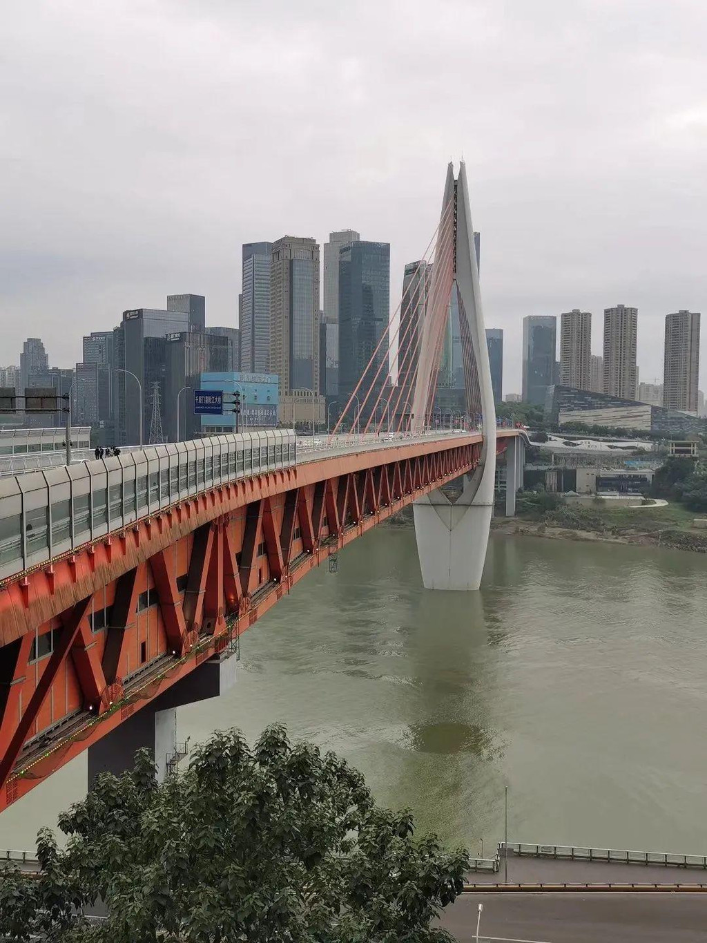 (嘉陵江大桥洞穿了洪崖洞中层,这样的景观在重庆不少见,还有穿楼的火车)