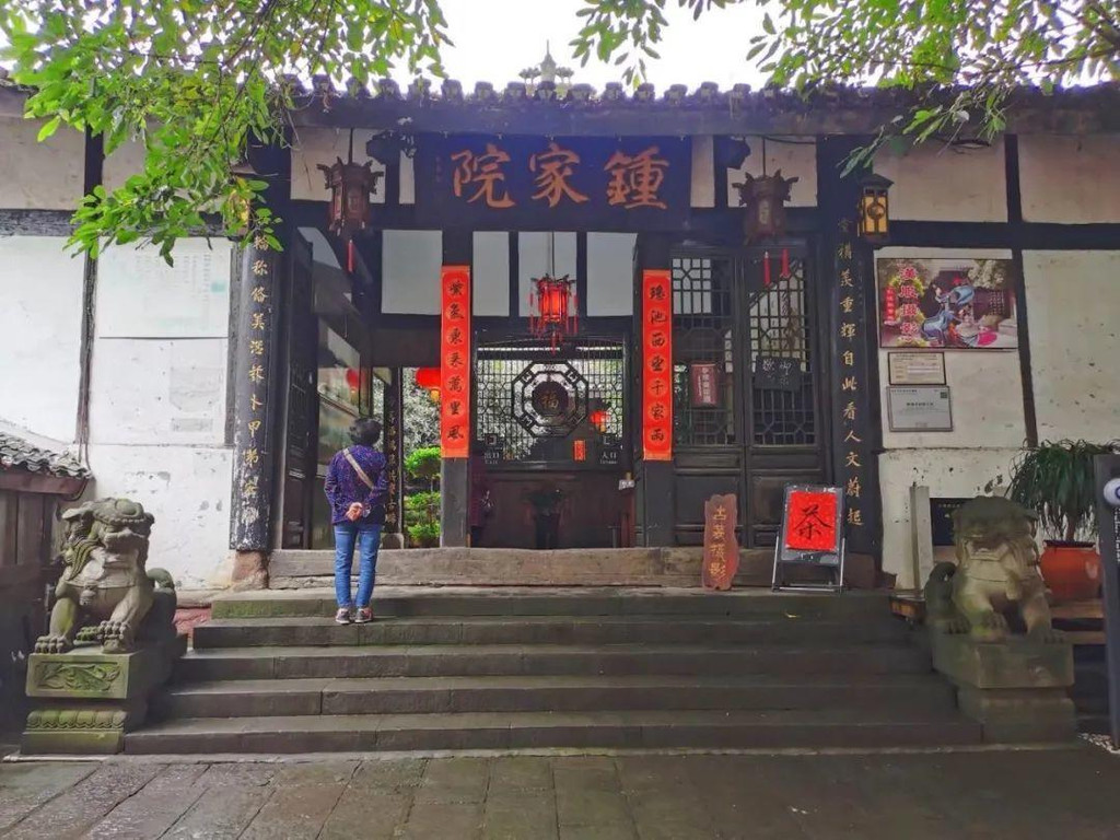 转运楼对面是钟家院,建于1890年,主人是在磁器口长大的钟云亭老先生。他曾任慈禧太后的外采办,后告老还乡,在北京请人设计了房屋图纸,回到磁器口修建了现在钟家院。院落有北方四合院韵味,但所用的小青瓦和穿逗木架又极具南方民居的精致典雅。如今钟家院是设有瓷器陈列馆的磁堂,主要展现磁器口瓷器制作鼎盛时期的相关人物、事件和作品,还原了磁器口曾经的商贸繁华和历程变迁。
