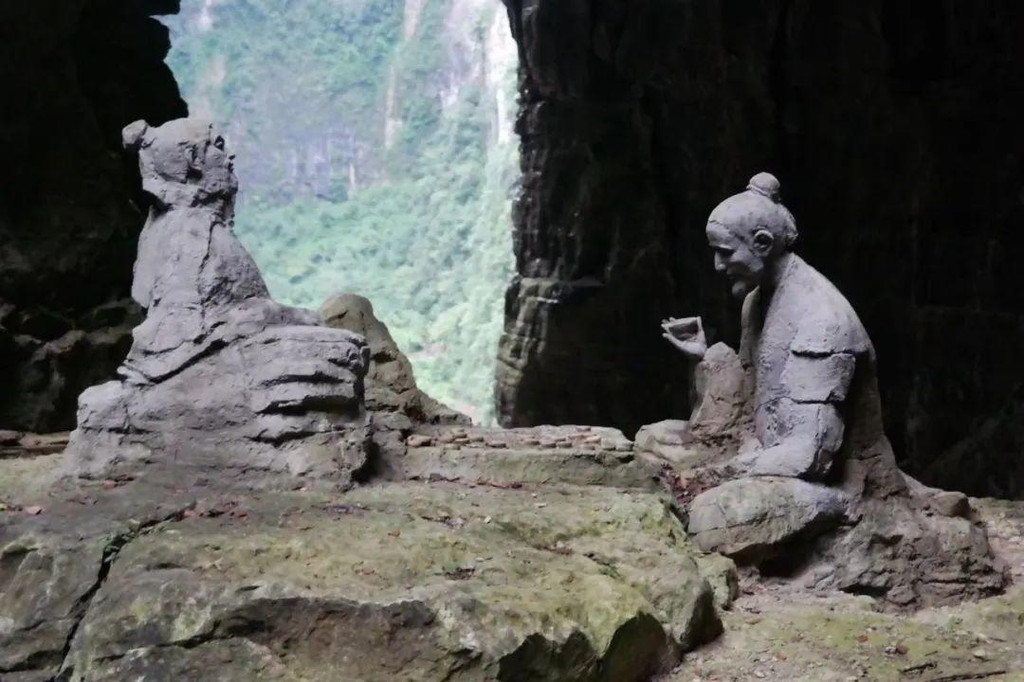 天龙桥下有隐士对弈的雕塑,悠然自得,令人向往: