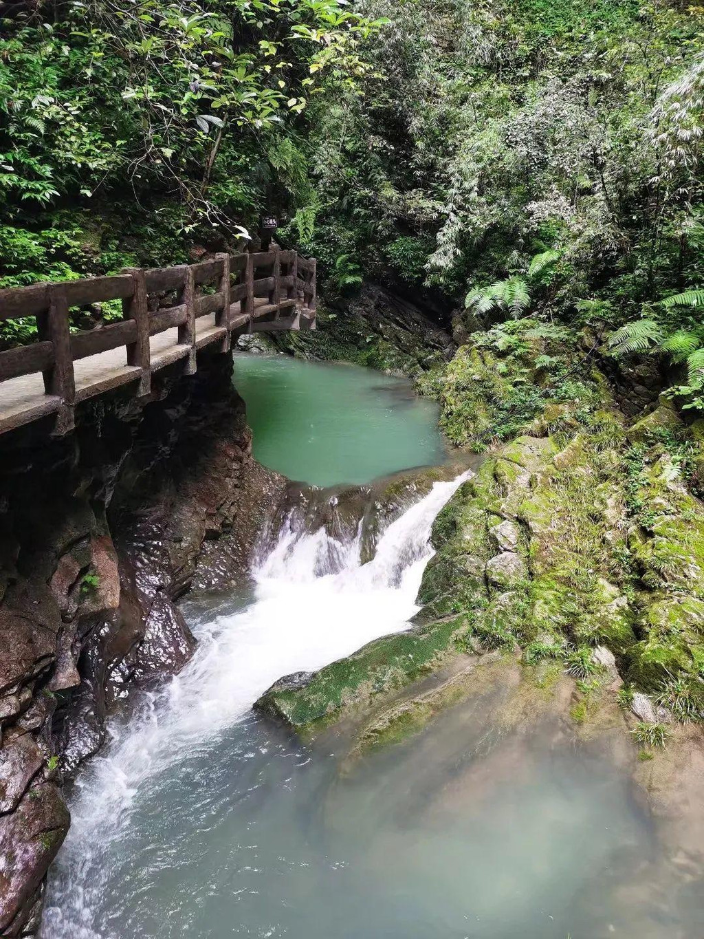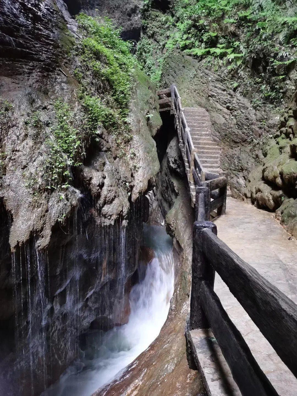 仰望壁立千仞,天光曦微,雾漫溪水,幽邃的地缝让人心神宁谧。