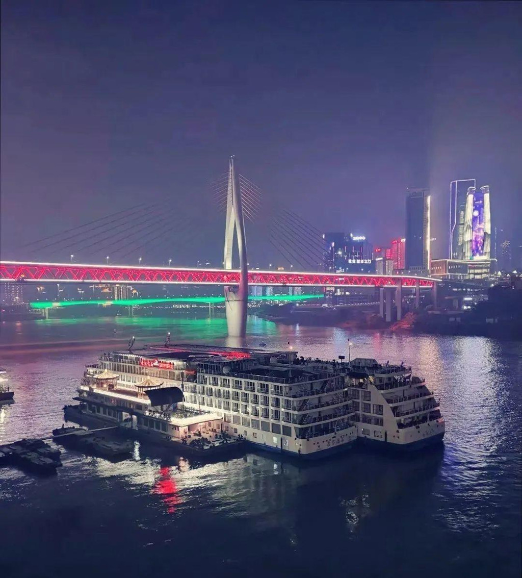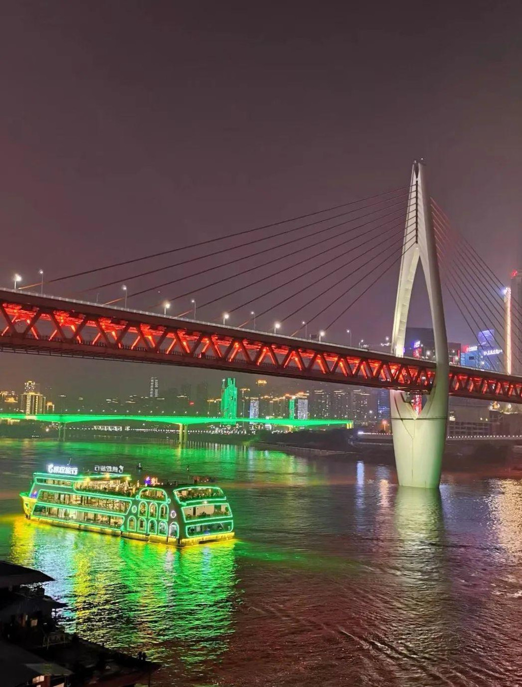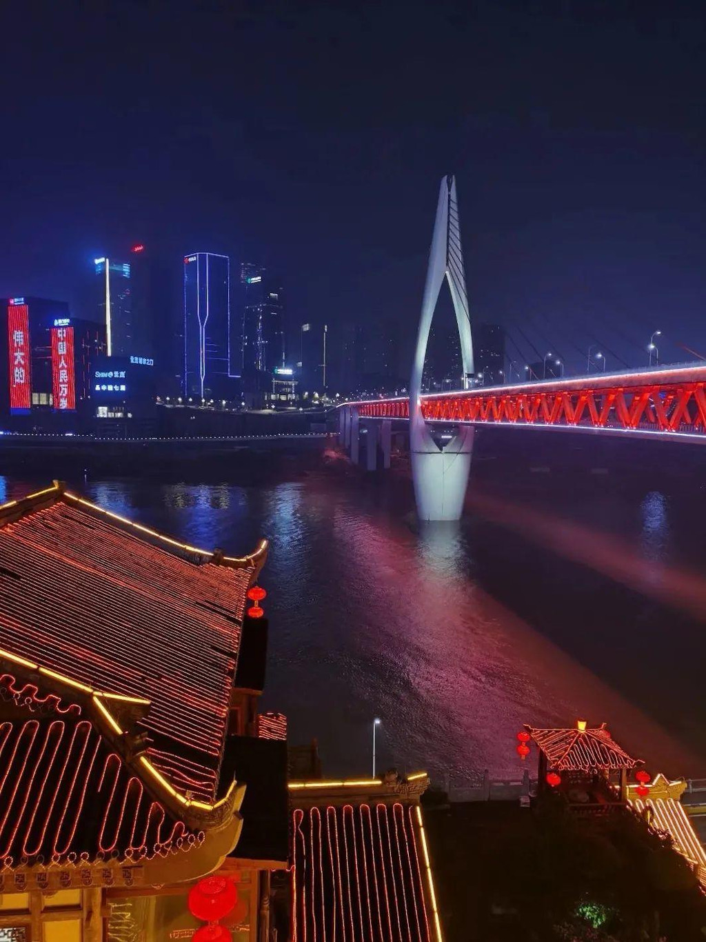 我看过不少夜景,上海浦东的高楼林立、天津海河的沽水流霞、南京秦淮的烟笼寒水、桂林四湖的日月双塔......自以为有水的夜色再难翻出新花样,然而重庆的夜色让我又一次感受到耳目一新的惊喜,也许是山城的高低错落让灯光层次丰富,也许是桥都的辉煌大桥让江湖璀璨多姿......