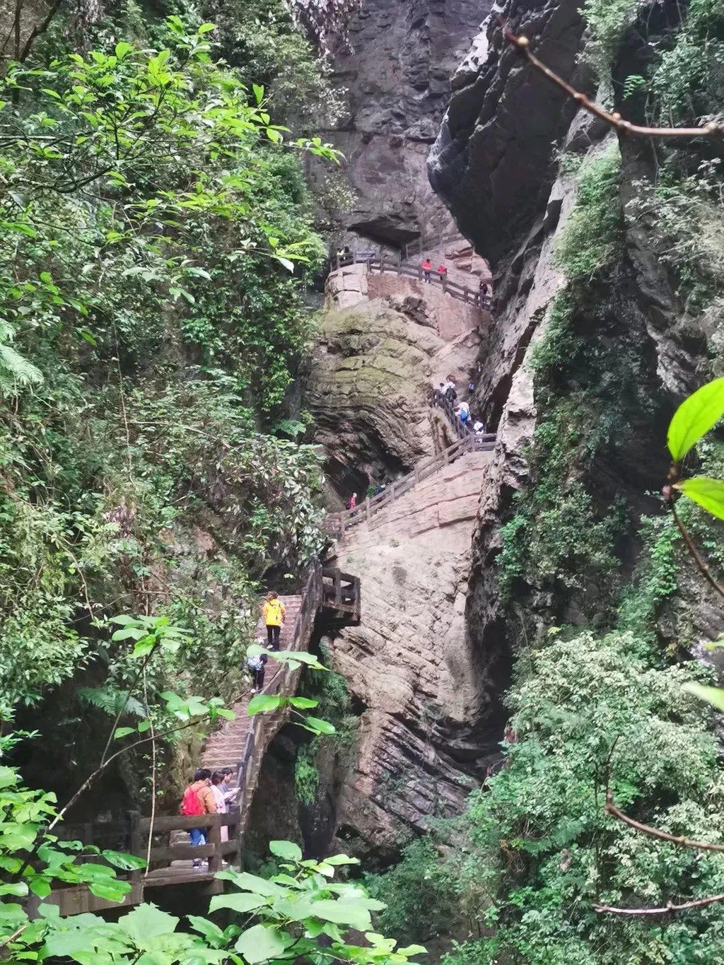 瀑布之后的路程需要攀援而上,在石梯的顶端来到了蛟龙寒窟。
