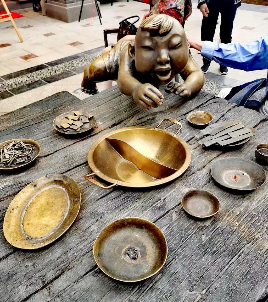 火锅是最受欢迎的食物,着急进食的胖娃娃的屁股已被游客拍的锃光瓦亮:
