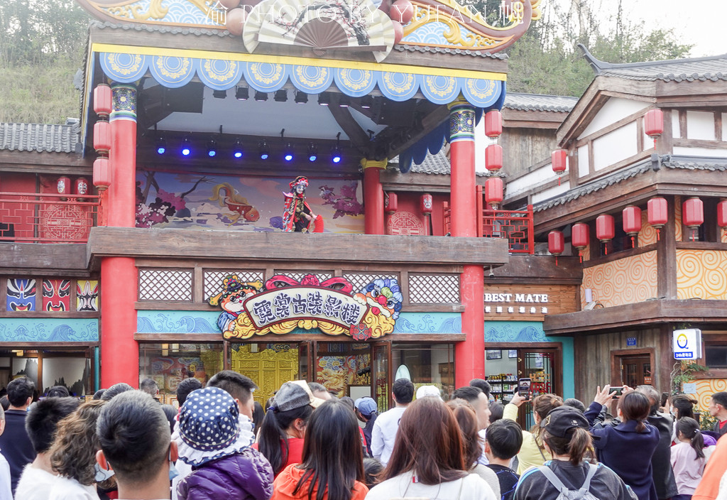 进入景区大门不远,便有一个古色古香的戏台,上面正在上演川剧的变脸,只见台上的川剧大师随着节奏欢快的《变脸》音乐,手握一把折扇,一转身就变幻一张脸,非常的神奇,引得台下掌声阵阵,喝彩不断。