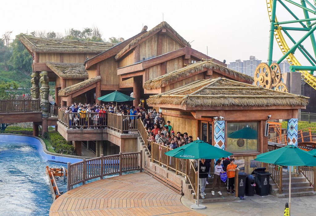 这个项目好像叫峡谷漂流,也就是一个人工的水上建设的漂流项目,从上图可以看到,排队的人特别多,目测超过100人,最后面估计得等一个小时以上。