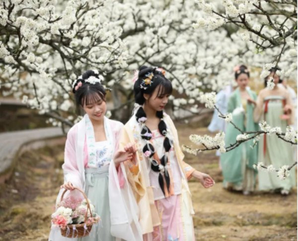 身着汉服的小姐姐比这如雪的李花还要亮眼。