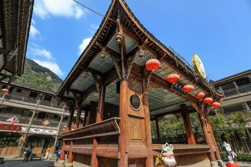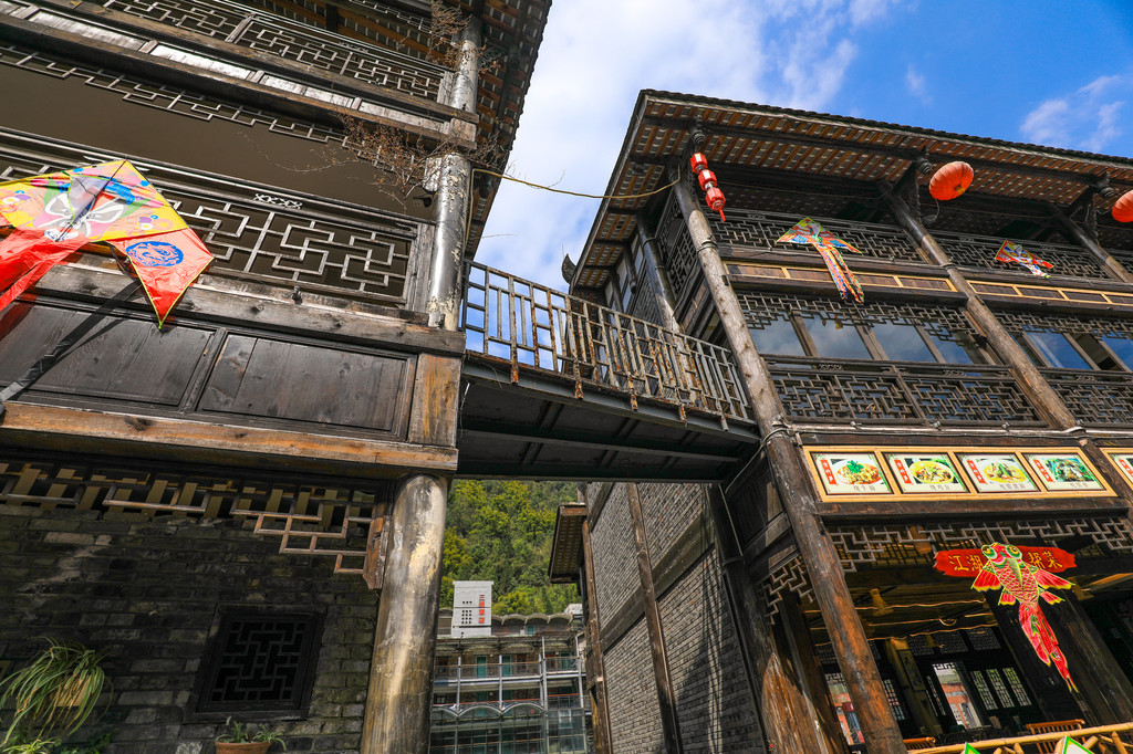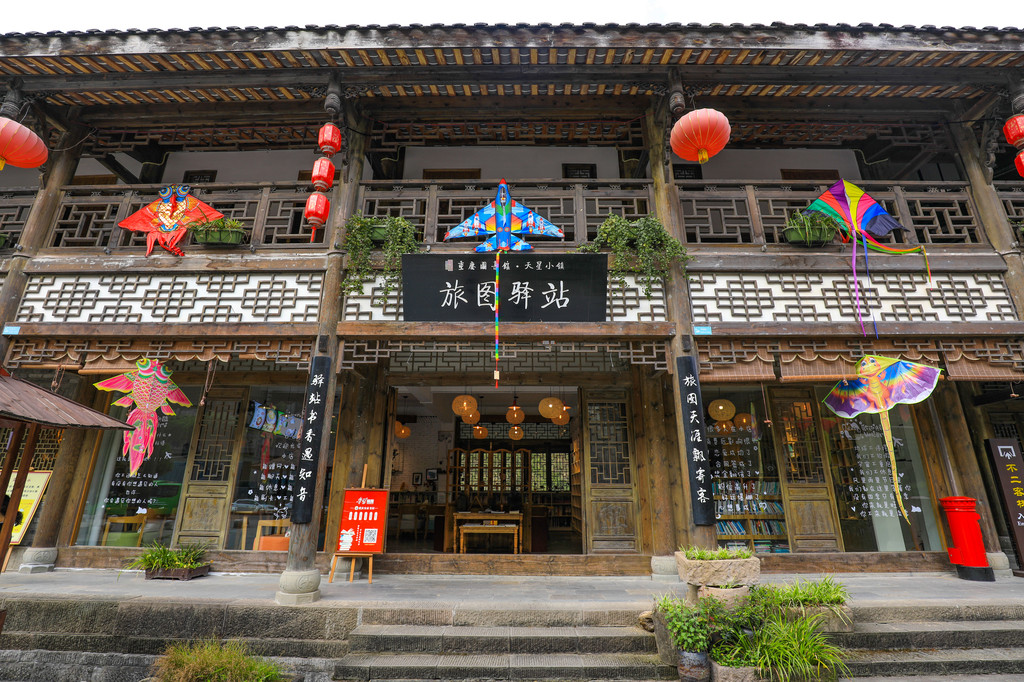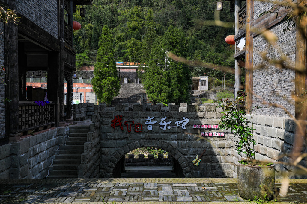 走进小镇的那一刻,有种身在丽江古城的错觉,在往里走,才发现这里是一座以川渝吊脚楼民居为特色营造的街区,依山傍水、山清水秀,多以怀旧风的酒楼、杂货店和客栈为主。