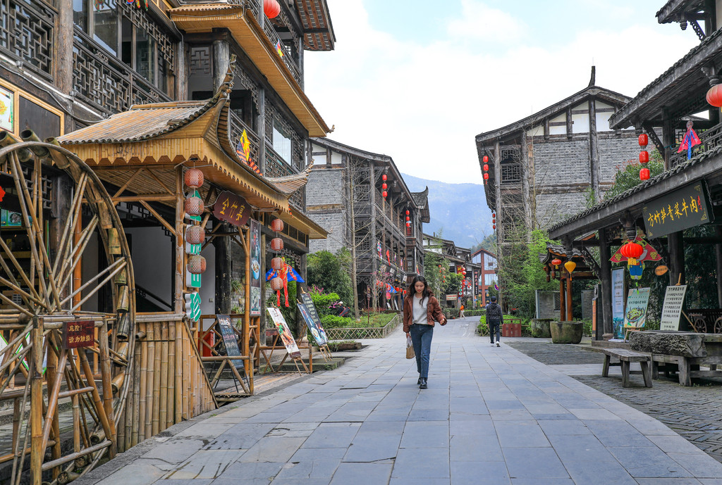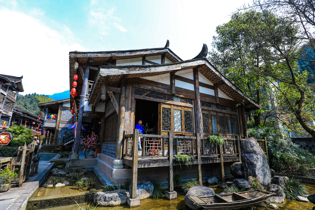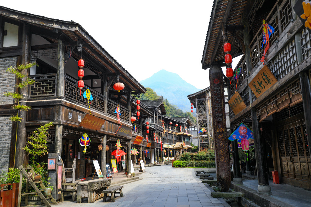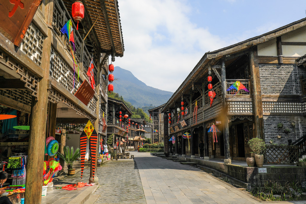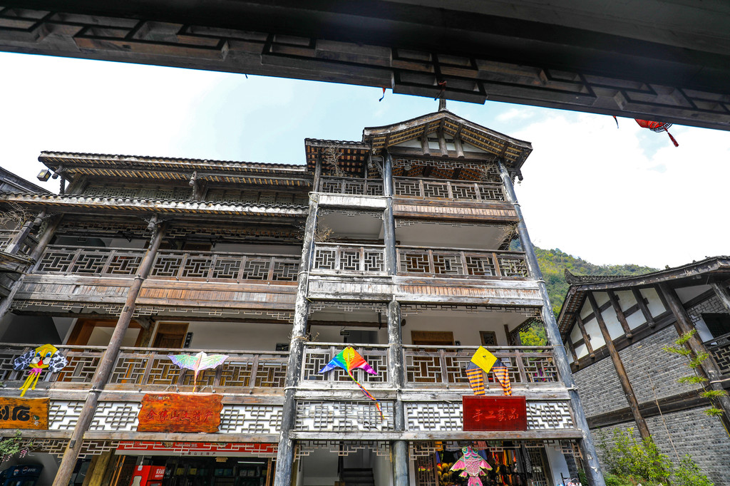 走进小镇的那一刻,有种身在丽江古城的错觉,在往里走,才发现这里是一座以川渝吊脚楼民居为特色营造的街区,依山傍水、山清水秀,多以怀旧风的酒楼、杂货店和客栈为主。