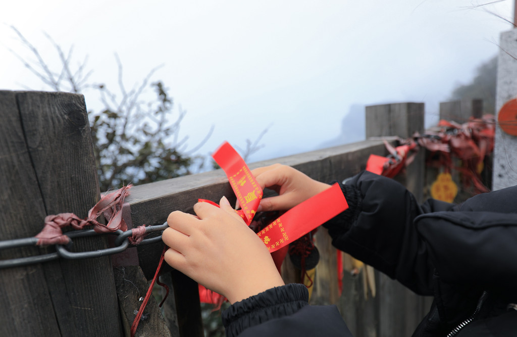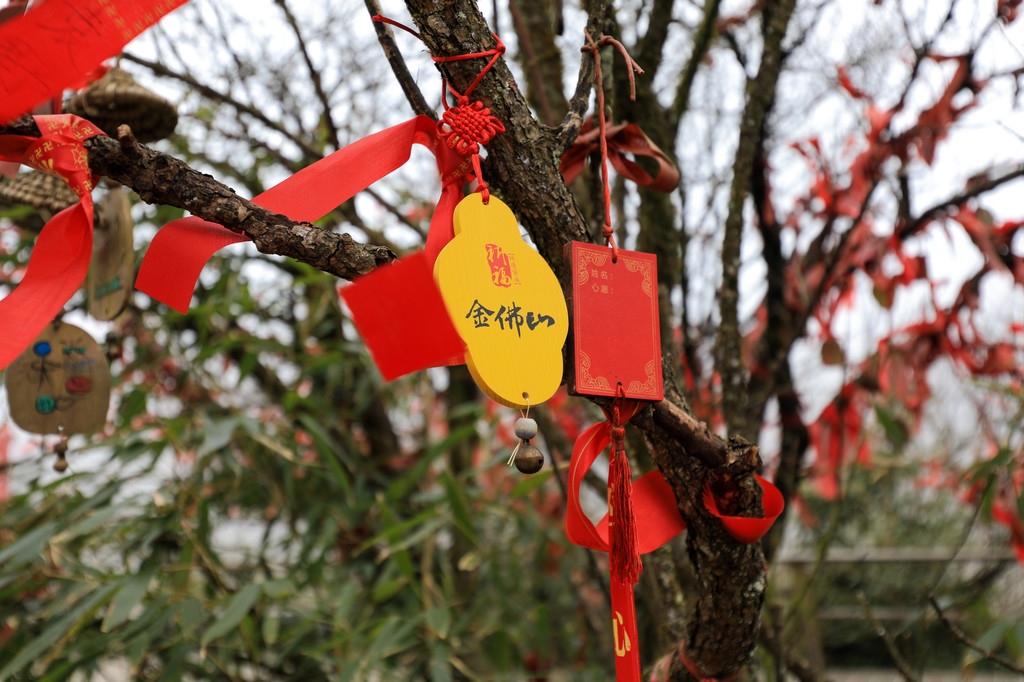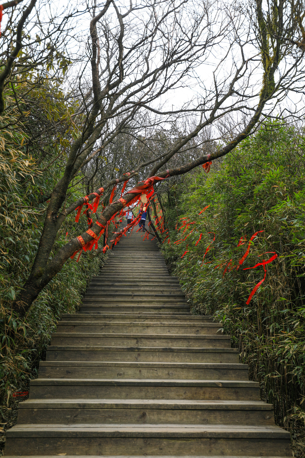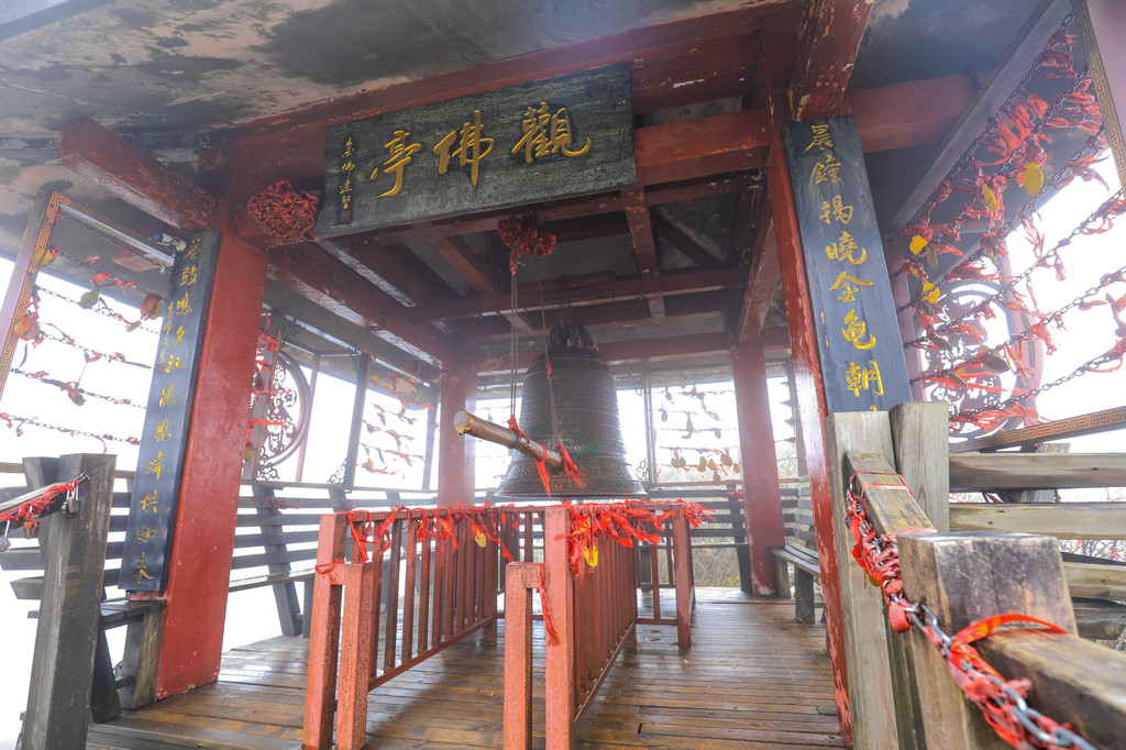 一路向上,走过长长的木栈道,就到了金佛山顶观佛亭,在这里敲响祈福的金钟 ,系一条祈福丝带,把所有美好的心愿寄于万物生长的季节。