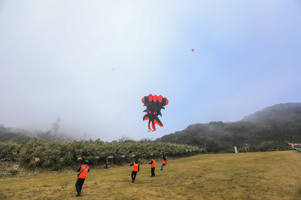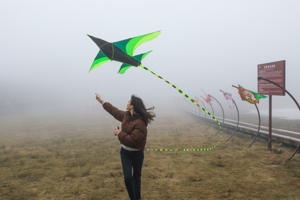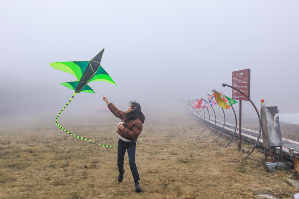 五颜六色的风筝,为金佛山增添了春的色彩,漫游在这片草地上,整个心情都放松了,虽然天气不是特别好,但浓雾缥缈、青草绿地也别有一翻景象。