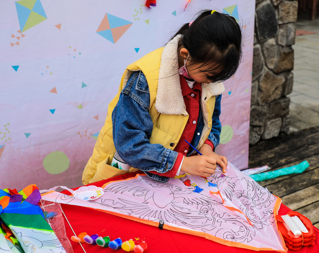 拒绝千篇一律,做一个独一无二的风筝,这里还专门设置了风筝手工彩绘操作台,尤其是带着小朋友的家长们,可以陪着孩子亲手绘制一个专属自己的风筝,是一件非常有意义的事。