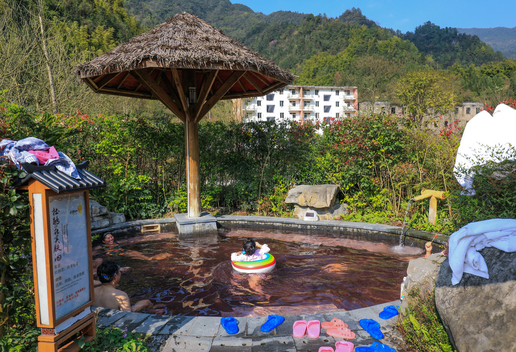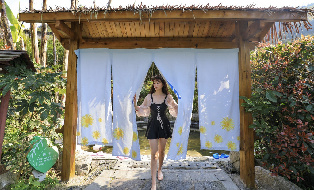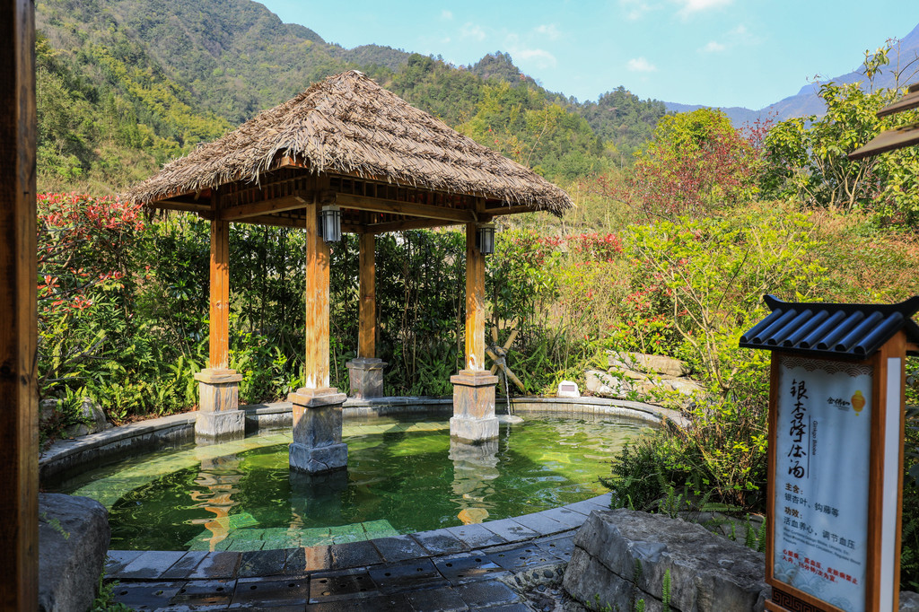从天星小镇一直往里走就是天星温泉城,这个季节不冷不热最适合去泡泡天然温泉,解解春乏,放松身心。天星温泉城风格十分素雅,与四周山水自然紧密结合,以廊道为界分动感温泉区和泡池区(13个泡池),另还设有多个功能游玩区域,实为老少皆宜。