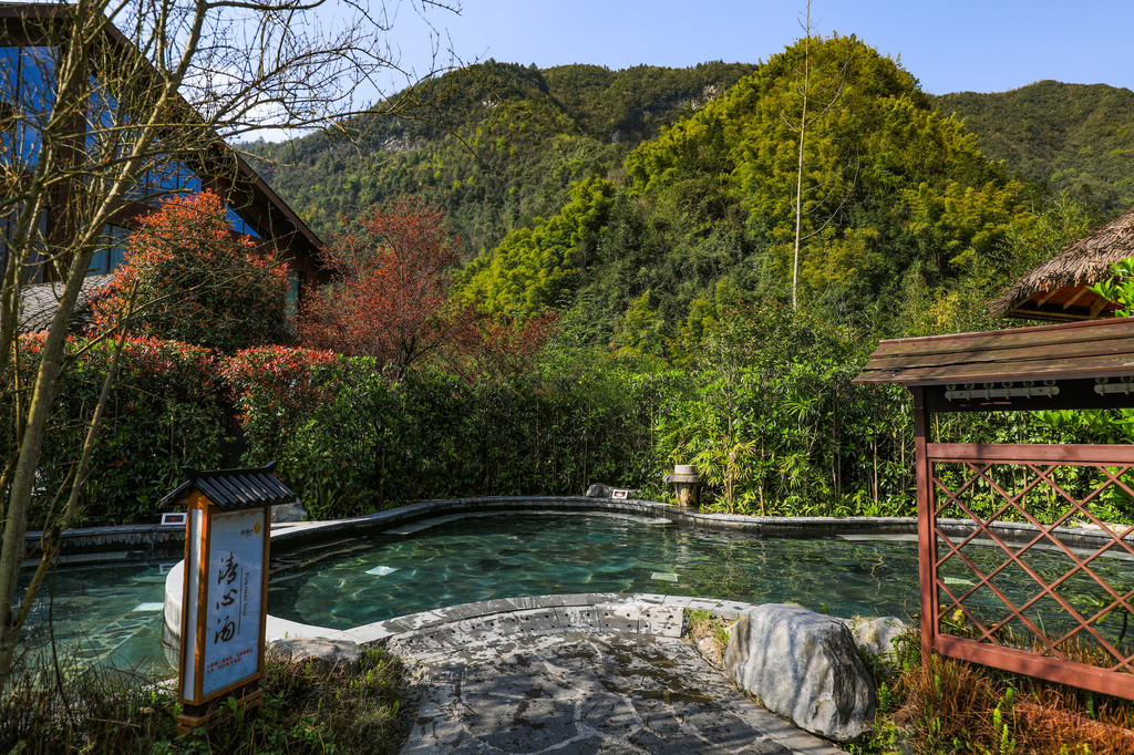 这里的温泉出水温度为49℃,天然锶含量较高,硫含量适中,水质清澈透明,可饮可浴,有极高的医疗、保健价值。本草养身区共有13个不同功效的温泉池,每一个都能让肌肤放松的舒展,听着音乐和大自然的鸟鸣声,享受这一刻的舒适。