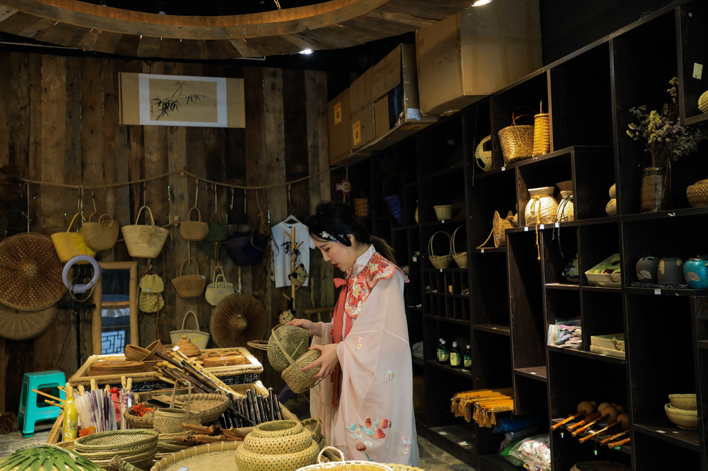 小镇上还有一条专业守护手艺的老街,像这家竹篾堂,里面摆放了很多竹艺手工品,全是来自老爷爷纯手工制作,看到这些就好像回到了童年时光,爷爷坐在门口,手里一边把玩着竹子一边和旁边的老奶奶话家长。