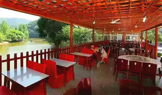餐厅可接待200人就餐,依湖而建,吹着湖面上进来的风,感觉一身舒爽。人间烟火,唯有美食能抚慰人心。品尝风味美食这里的每道菜都是满满诚意,来到这里,除了赞叹山庄的山灵水秀之外,大家对他家的菜品都有着极高的评价。
