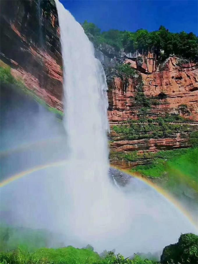 清晨,当太阳冉冉升起时,您可以去四面山洪湖景区桃花岛华夏瀑望乡台观看彩虹。