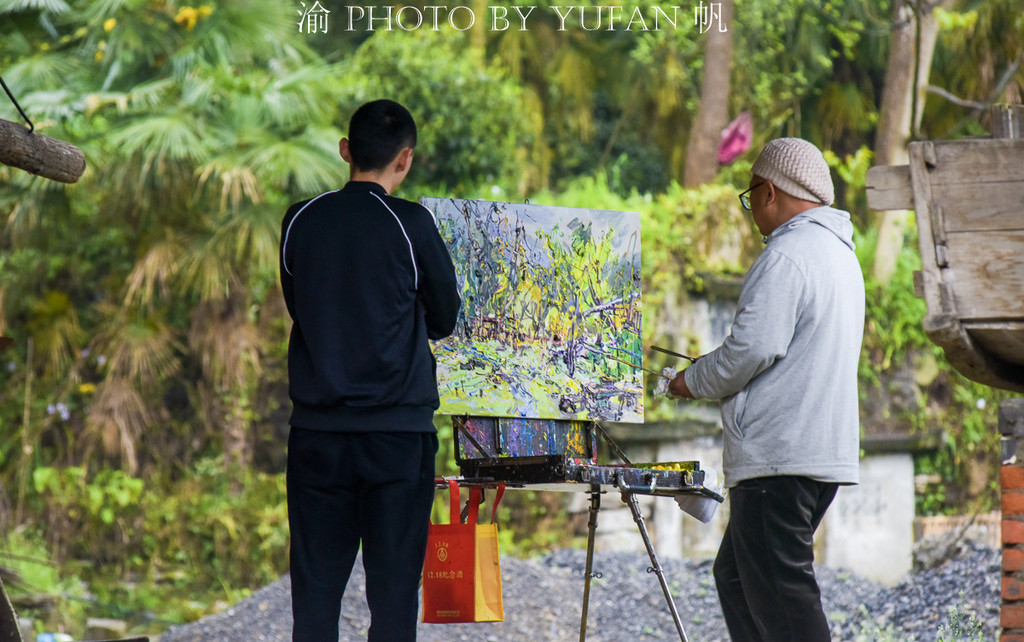四五月份,银杏虽没有百花娇艳的芳香,却翠绿的嫩叶如展开的扇面,在柔柔的暖风中摇曳,沙沙作响。配合着树下的古村落,正是画家们笔下难得的写生素材,因此迎来了大量艺术家前来写生。